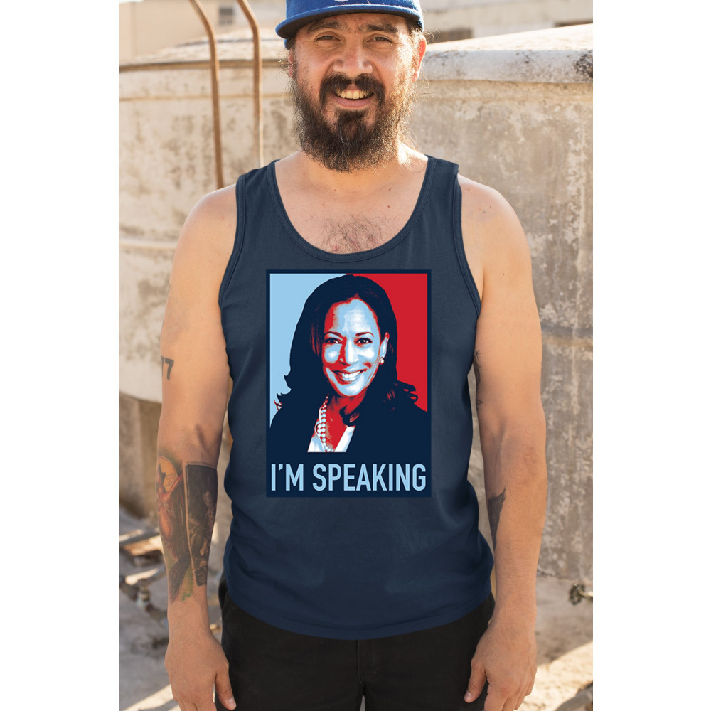 Show your support for Kamala Harris and Tim Walz with this "I'm Speaking" design. A bold statement celebrating liberal values and progressive policies. "Let's Win This"