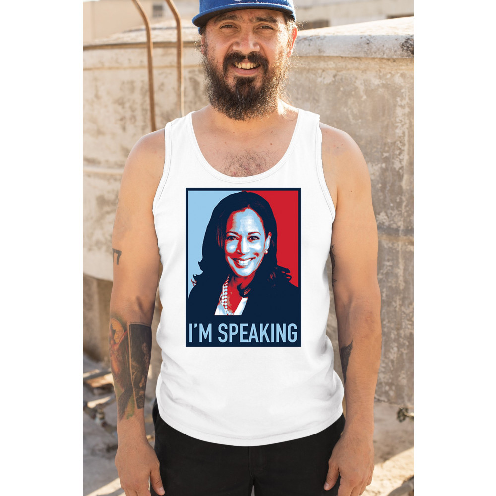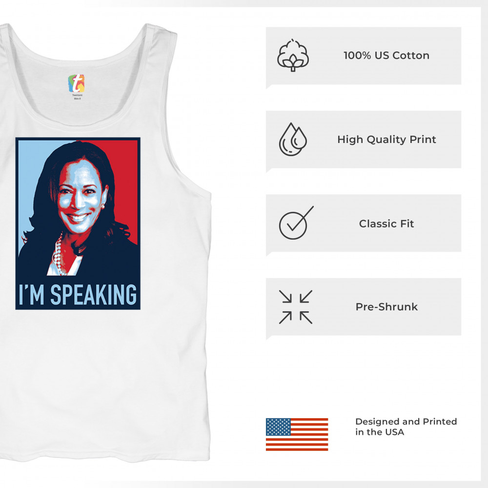 Show your support for Kamala Harris and Tim Walz with this "I'm Speaking" design. A bold statement celebrating liberal values and progressive policies. "Let's Win This"