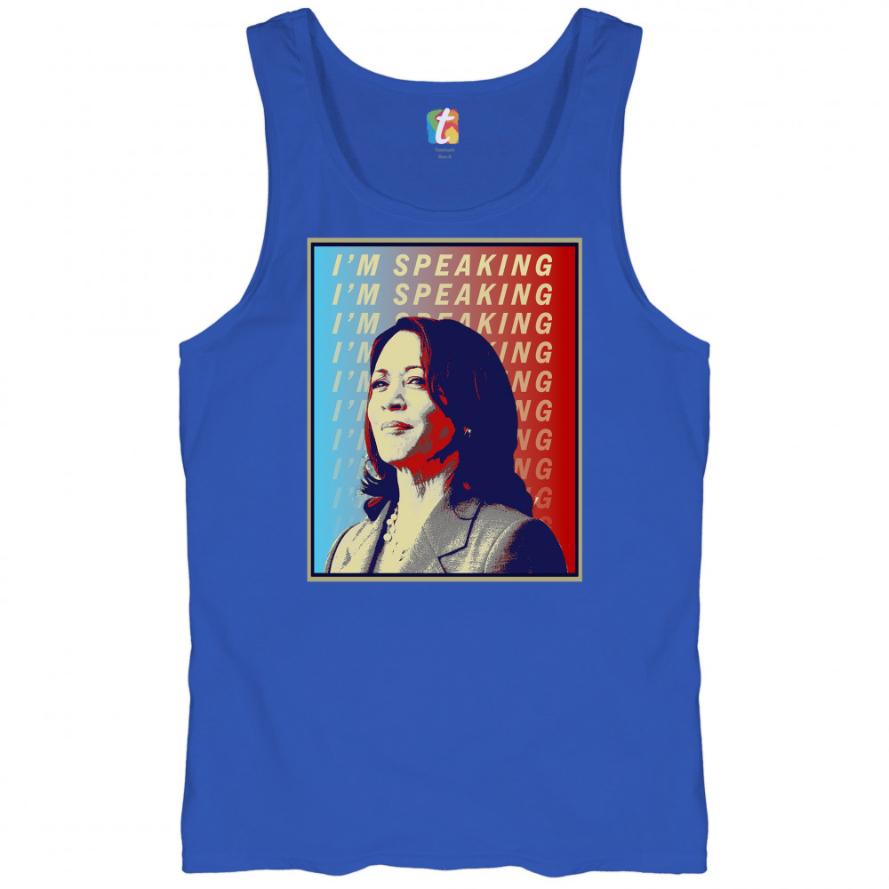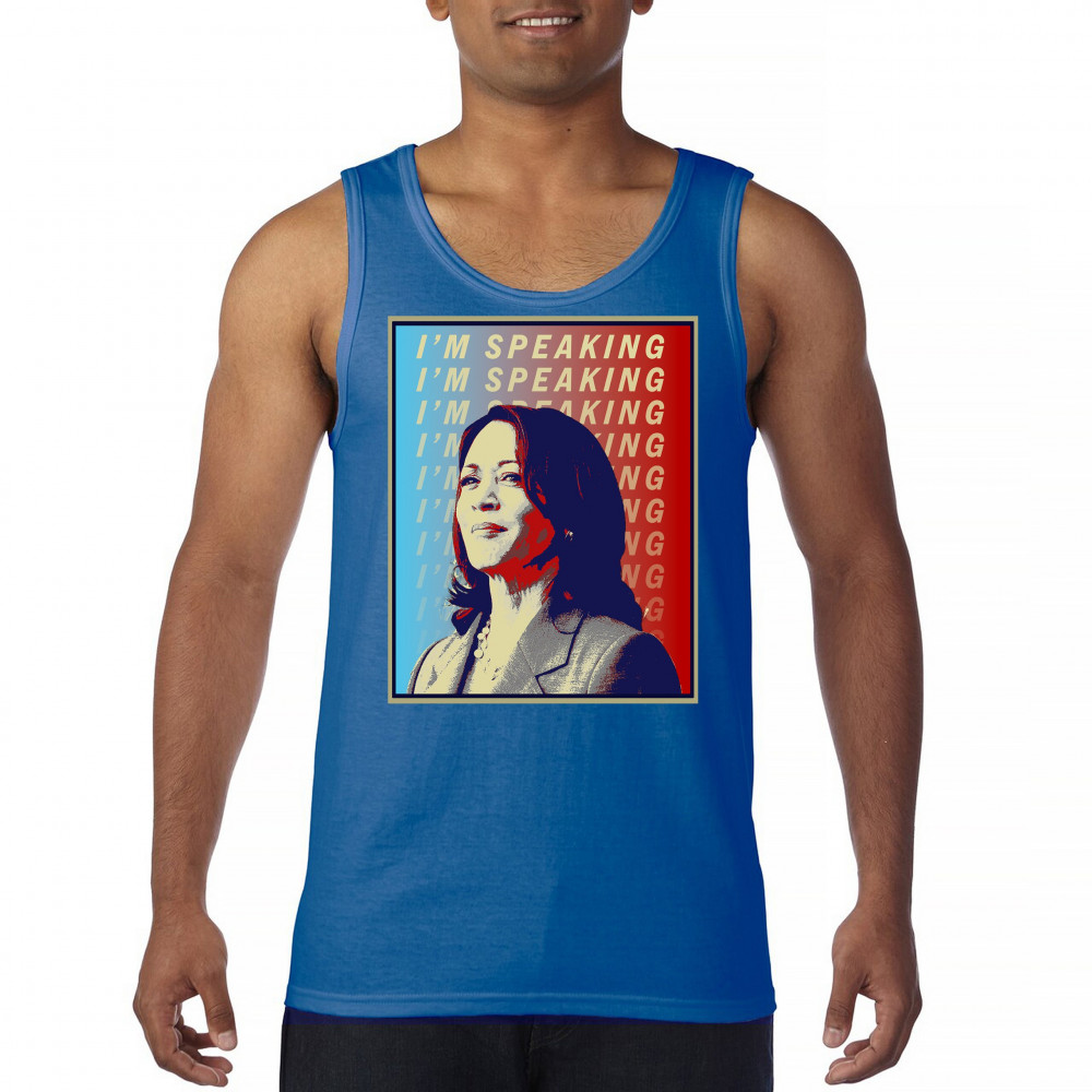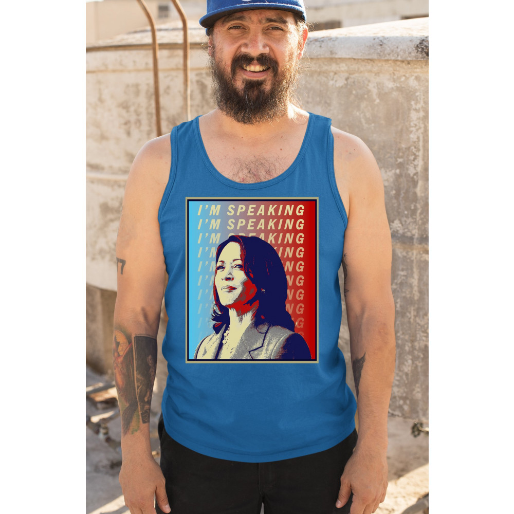 Support Kamala Harris with this bold and inspiring design. "I'M SPEAKING" echoes her powerful voice in the political arena, making it perfect for anti-Trump supporters, liberals, and Democrats. Crafted from durable materials, this design is comfortable for any event, from rallies to casual outings. Celebrate diversity and the historic candidacy of the potential first female president, resonating with black Americans, Hispanic Americans, LGBTQ supporters, and other minorities. Make a statement of hope and progress with this unique design.