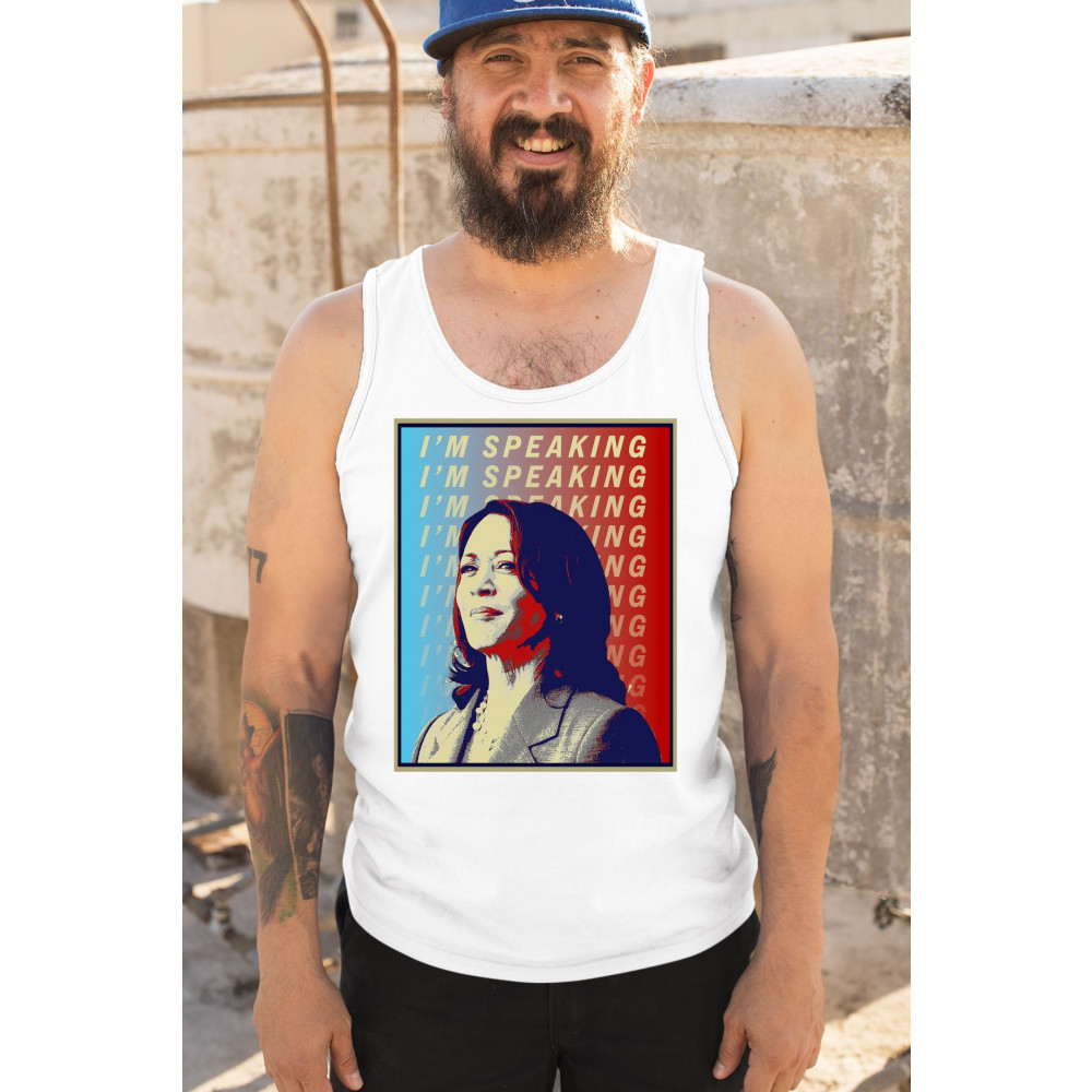 Support Kamala Harris with this bold and inspiring design. "I'M SPEAKING" echoes her powerful voice in the political arena, making it perfect for anti-Trump supporters, liberals, and Democrats. Crafted from durable materials, this design is comfortable for any event, from rallies to casual outings. Celebrate diversity and the historic candidacy of the potential first female president, resonating with black Americans, Hispanic Americans, LGBTQ supporters, and other minorities. Make a statement of hope and progress with this unique design.