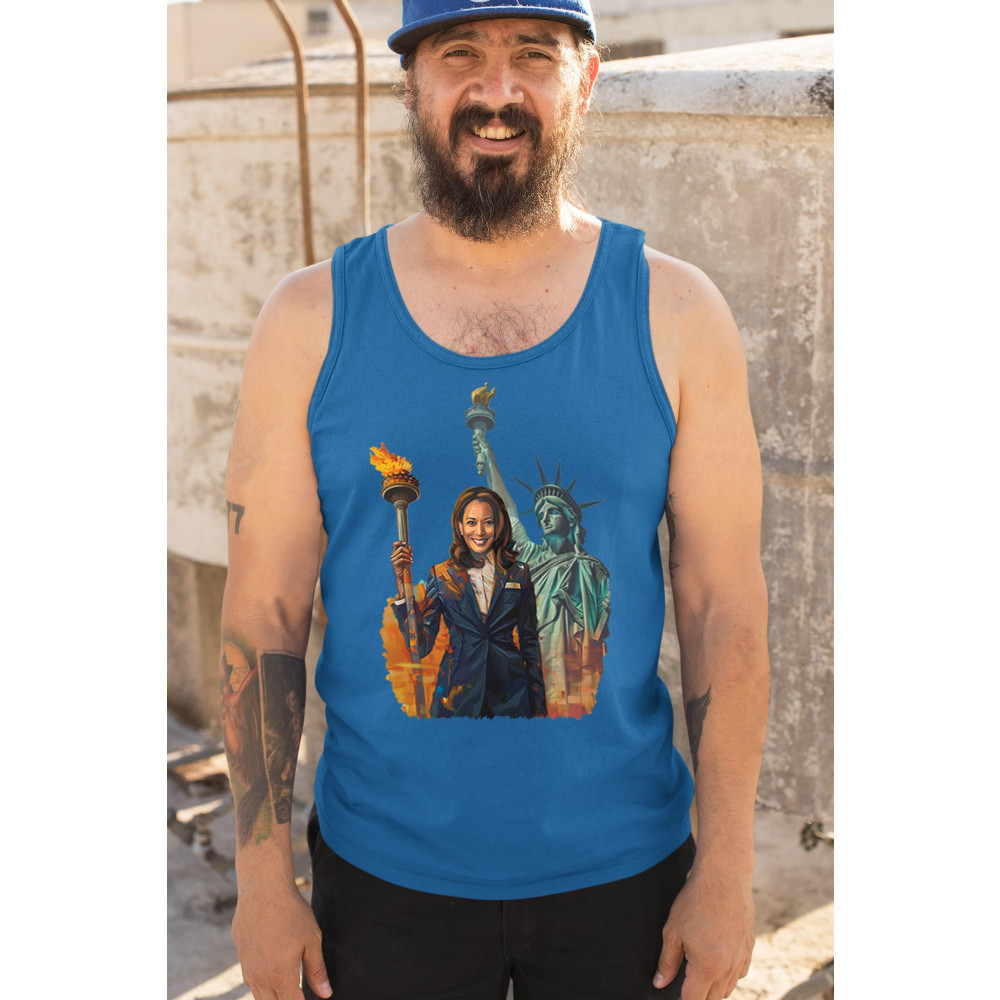 Show your support for Harris-Walz 2024 with this bold design featuring Kamala Harris and the Statue of Liberty. Stand for justice, equality, and a brighter future.
