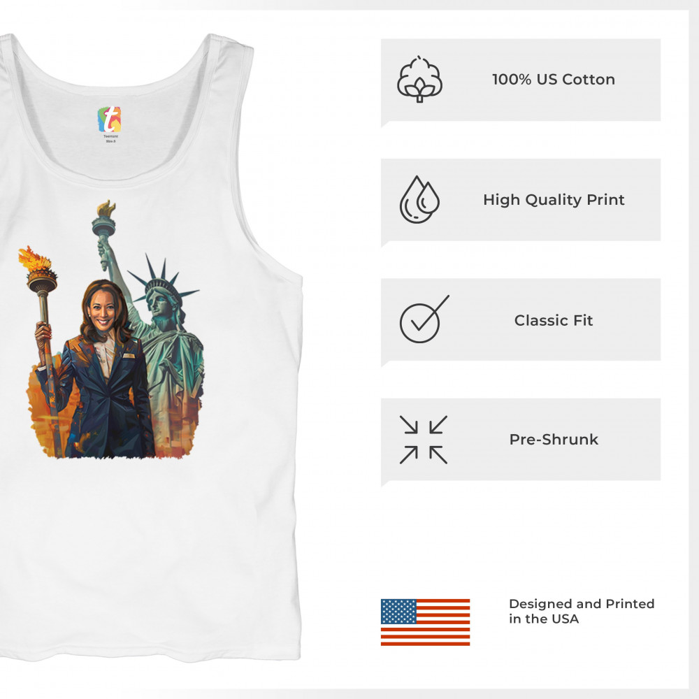 Show your support for Harris-Walz 2024 with this bold design featuring Kamala Harris and the Statue of Liberty. Stand for justice, equality, and a brighter future.