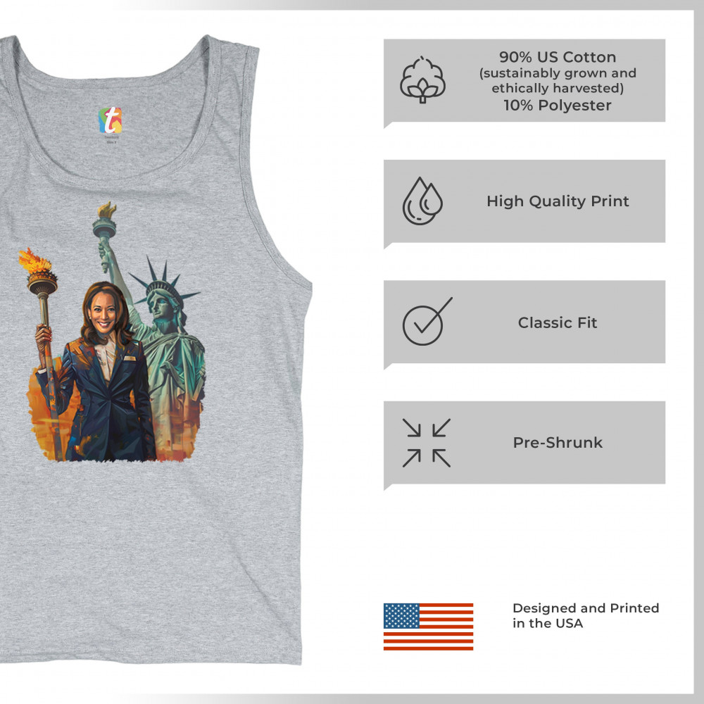 Show your support for Harris-Walz 2024 with this bold design featuring Kamala Harris and the Statue of Liberty. Stand for justice, equality, and a brighter future.