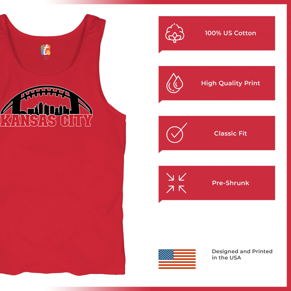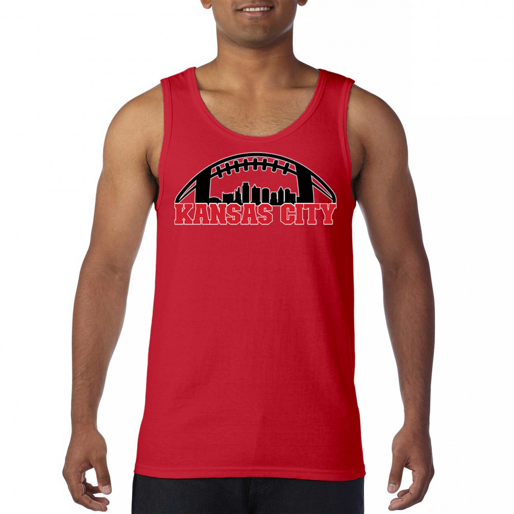 Celebrate Kansas City with a bold football design featuring the city skyline. Perfect for game days, tailgates, or proud sports fans.