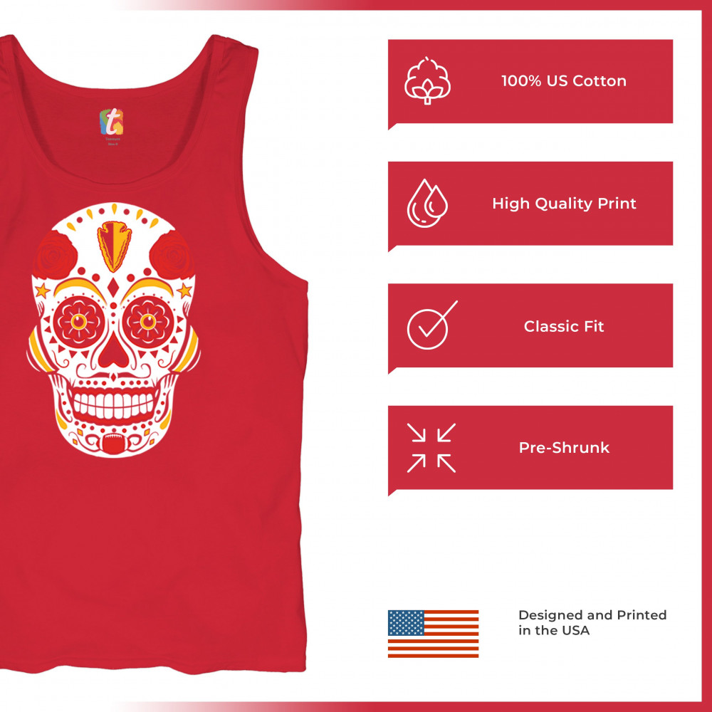 Celebrate Kansas City football with this Sugar Skull design inspired by Dia de los Muertos. Featuring Heart of America pride, red & gold tradition, and City of Fountains identity, it’s made for playoff energy, tailgate culture, and fantasy league rivalries. A bold calavera for KC fans.