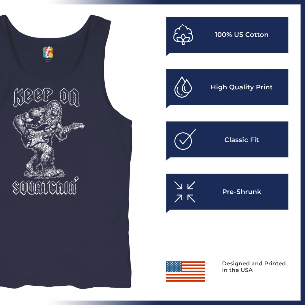 Celebrate music and adventure with the "Keep on Squatchin’" design! Bigfoot rocking a guitar makes this perfect for Sasquatch and music fans.