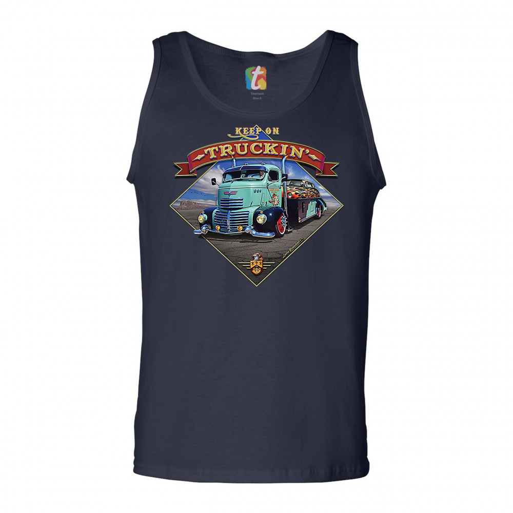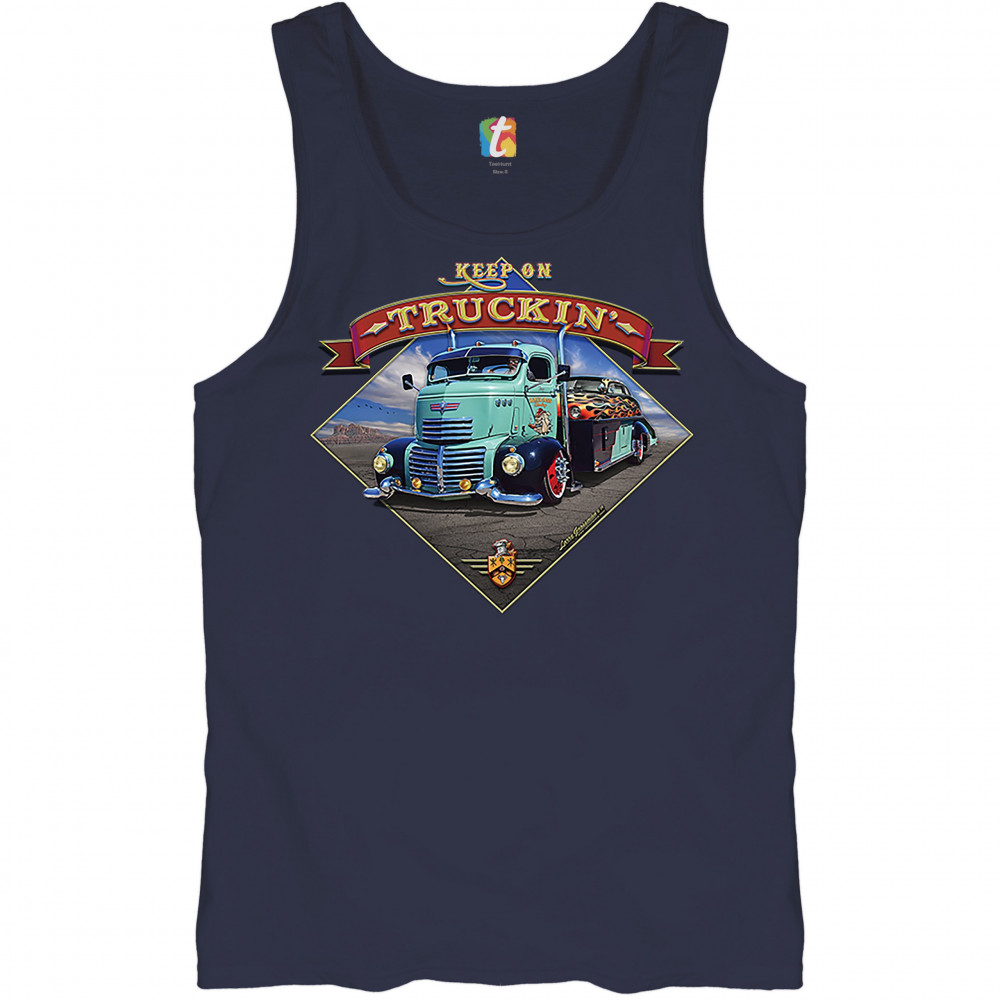 KEEP ON TRUCKIN' tank top route 66 retro vintage truck driver men's top navy blue