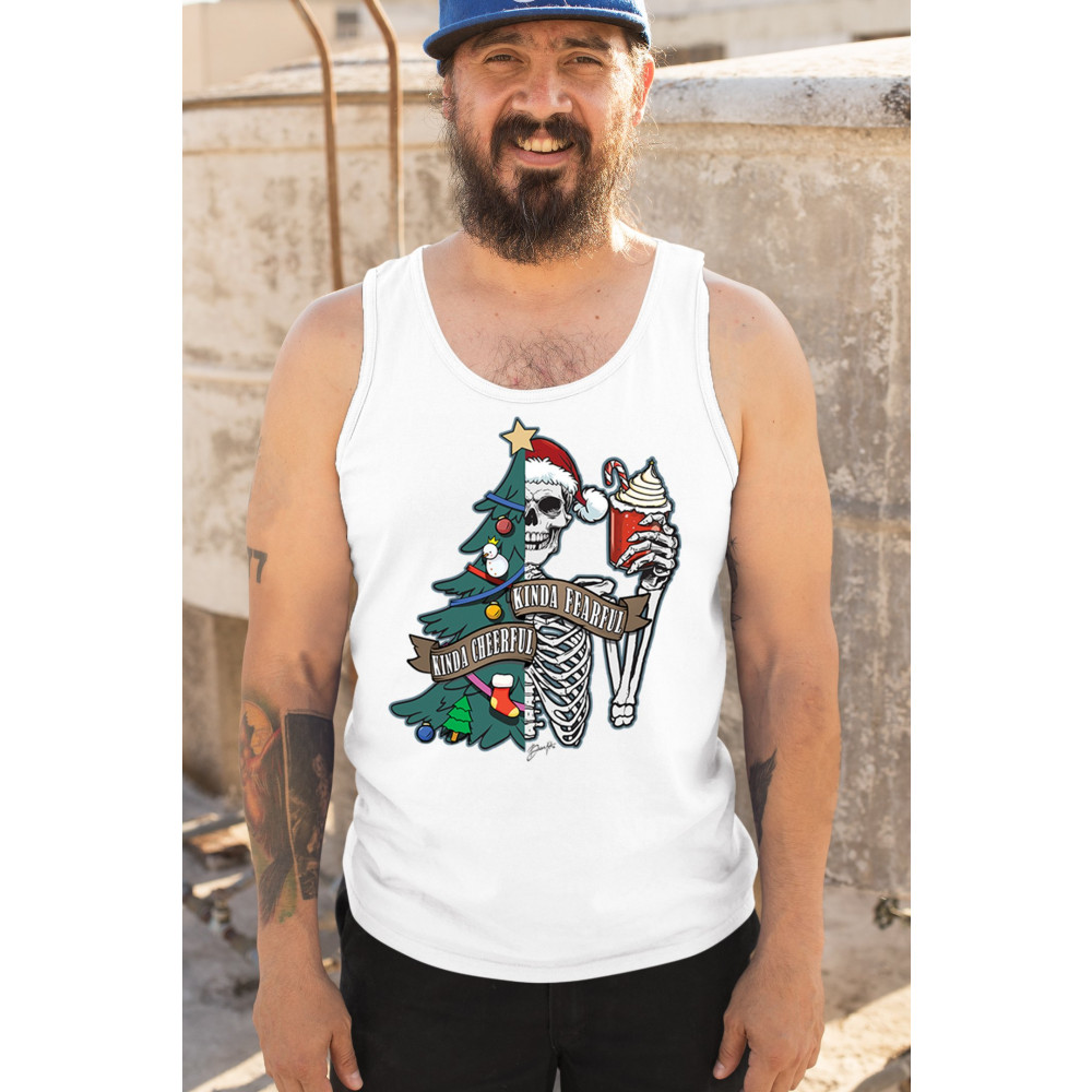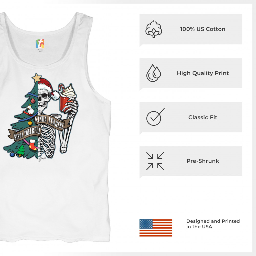 This creative Kinda Cheerful, Kinda Fearful design is a perfect blend of festive and spooky fun! Featuring a half-decorated Christmas tree and skeleton, it’s ideal for those who love combining Halloween and Christmas vibes. Great for secret Santa gifts, matching holiday pajamas, or rocking at your next ugly sweater contest. Perfect for office parties, family mornings, or simply adding some unique charm to your Feliz Navidad celebrations.
