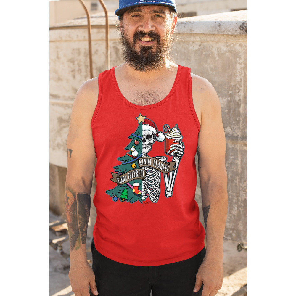 This creative Kinda Cheerful, Kinda Fearful design is a perfect blend of festive and spooky fun! Featuring a half-decorated Christmas tree and skeleton, it’s ideal for those who love combining Halloween and Christmas vibes. Great for secret Santa gifts, matching holiday pajamas, or rocking at your next ugly sweater contest. Perfect for office parties, family mornings, or simply adding some unique charm to your Feliz Navidad celebrations.