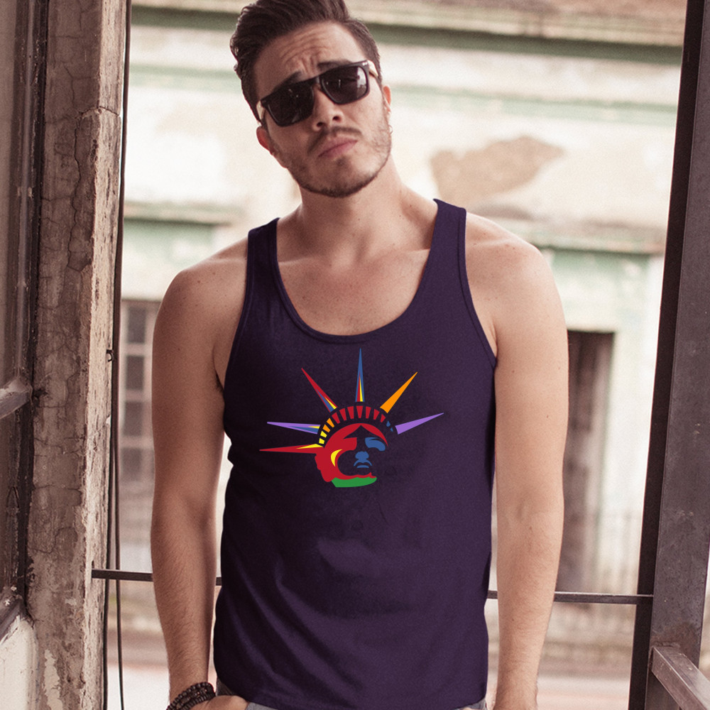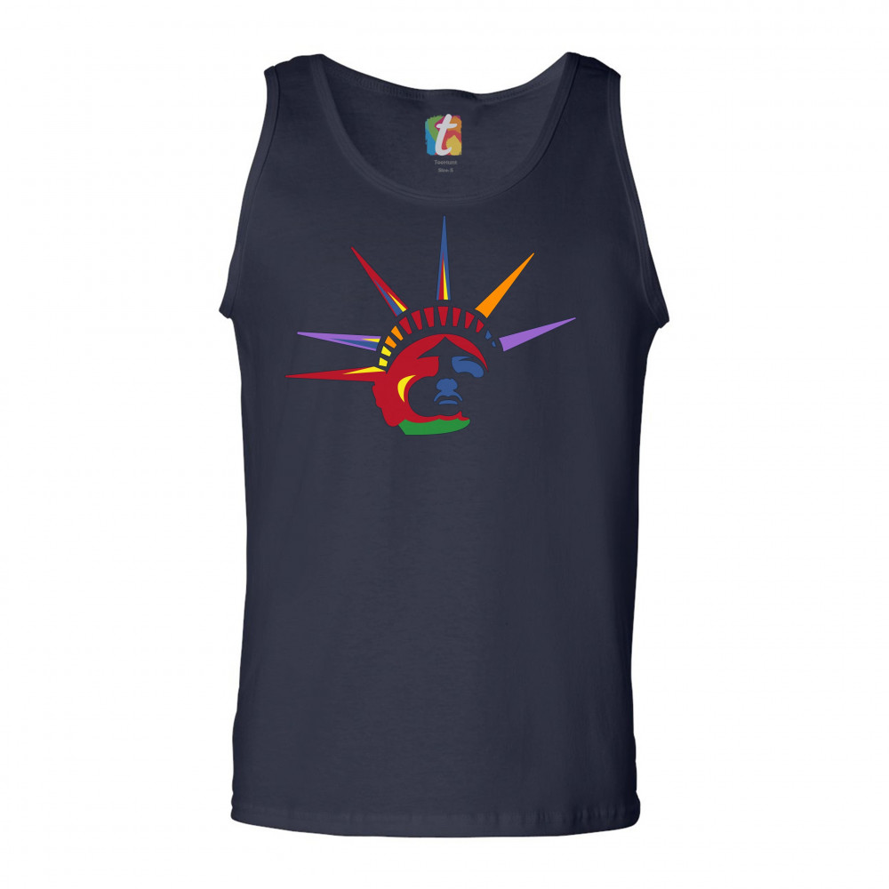 LADY LIBERTY tank top patriotic new york statue of liberty july 4th men's top navy blue