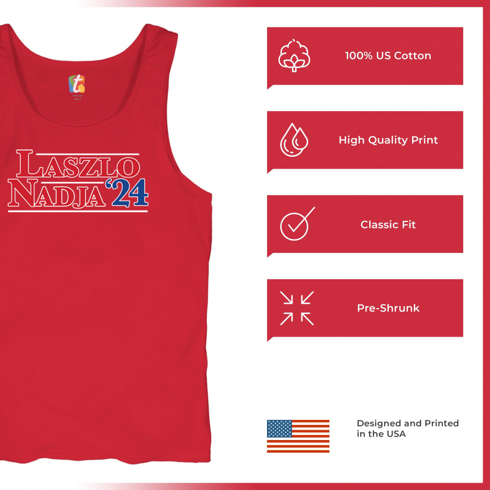 Celebrate humor and pop culture with the Laszlo and Nadja 2024 shirt. Perfect for fans of satire and quirky designs. Comfortable and durable.