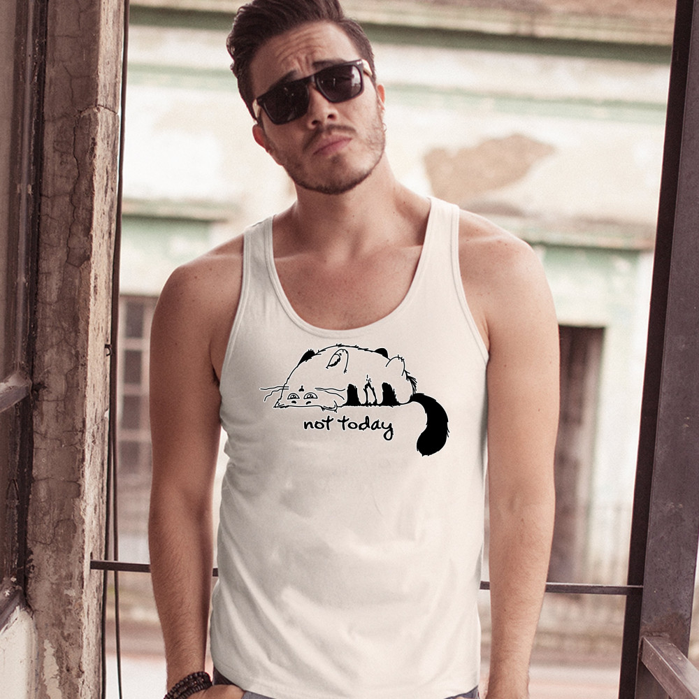 LAZY KITTY NOT TODAY tank top kitten cat lovers funny men's top white