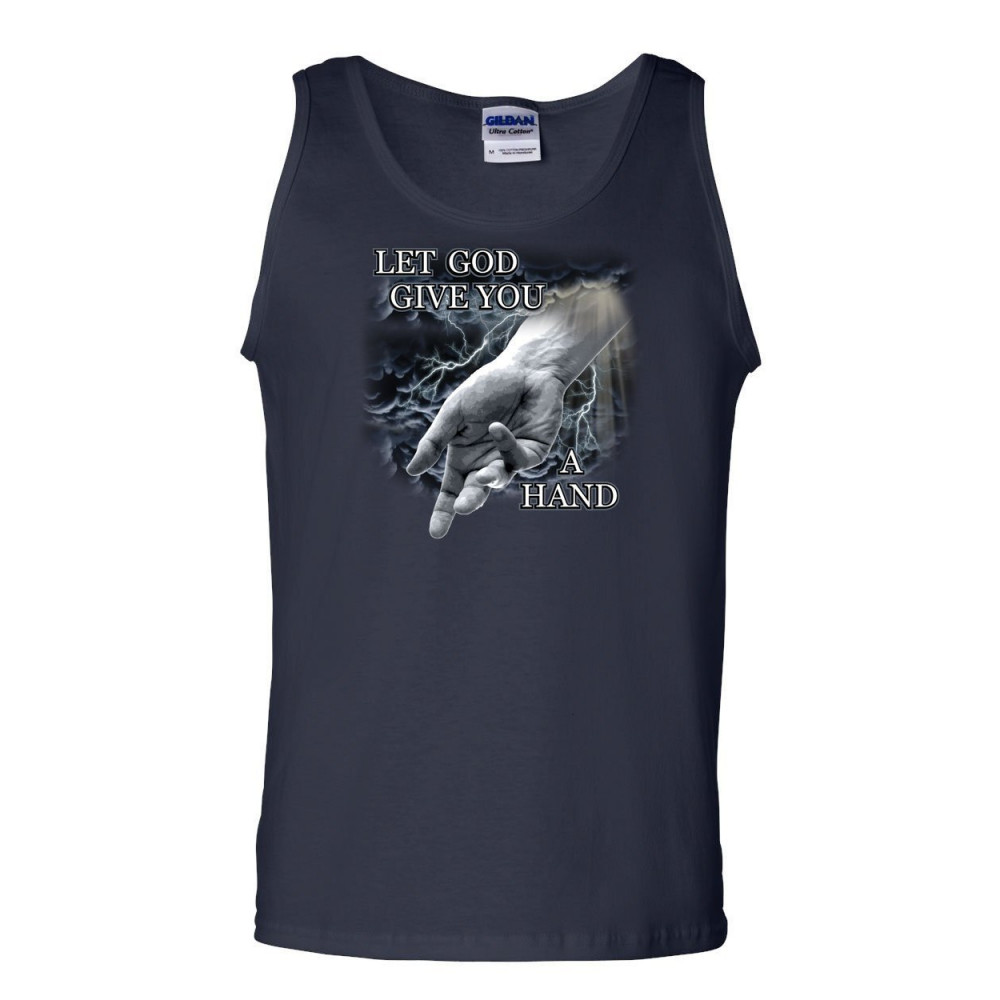 LET GOD GIVE YOU A HAND tank top religious catholic jesus bible sleeveless navy blue
