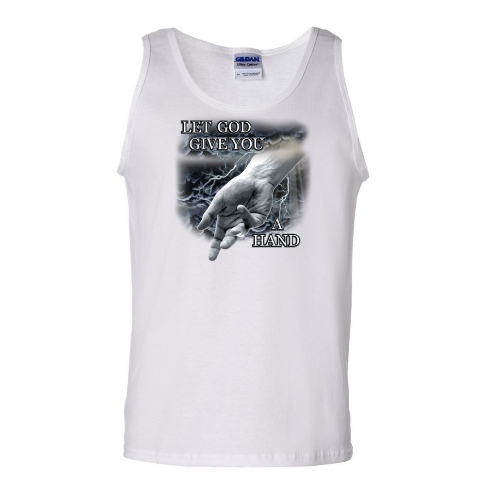 LET GOD GIVE YOU A HAND tank top religious catholic jesus bible sleeveless white