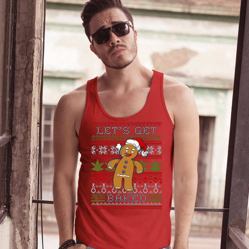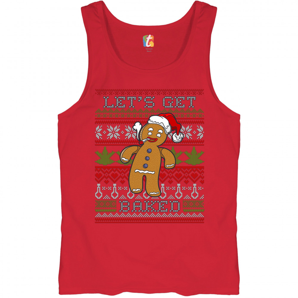 LET'S GET BAKED tank top ugly sweater gingerbread man 420 marijuana men's top red
