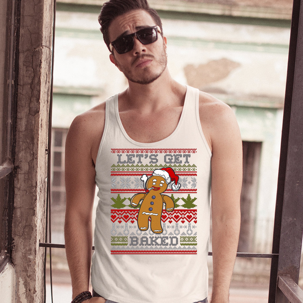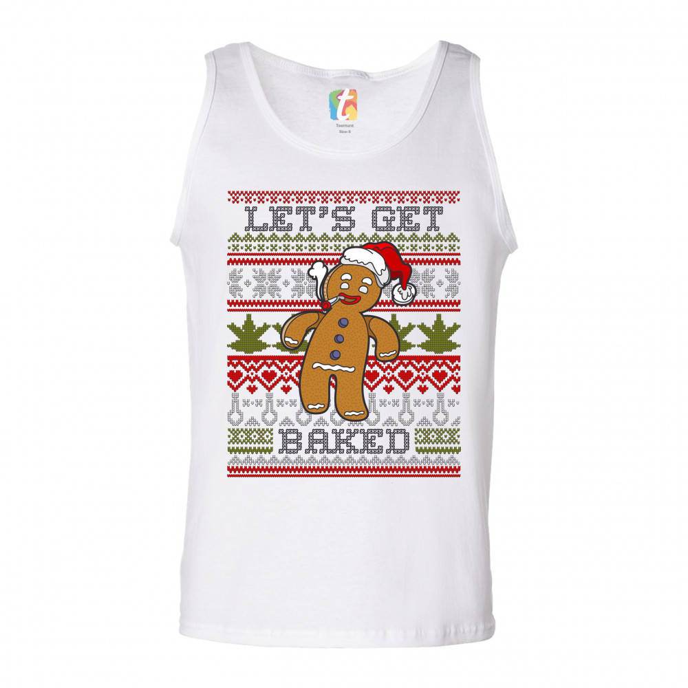 LET'S GET BAKED tank top ugly sweater gingerbread man 420 marijuana men's top white