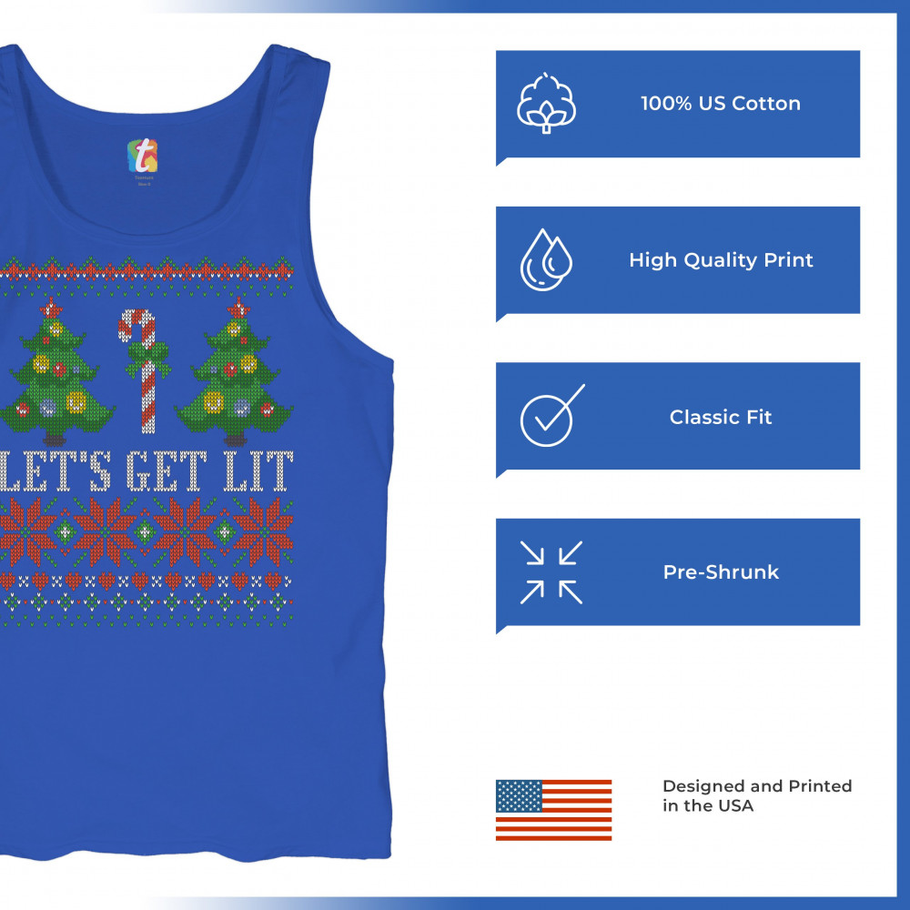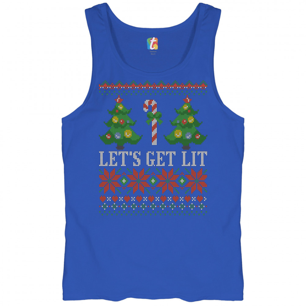 LET'S GET LIT tank top ugly sweater merry christmas candy cane men's top royal blue