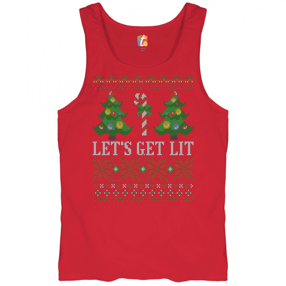 LET'S GET LIT tank top ugly sweater merry christmas candy cane men's top red