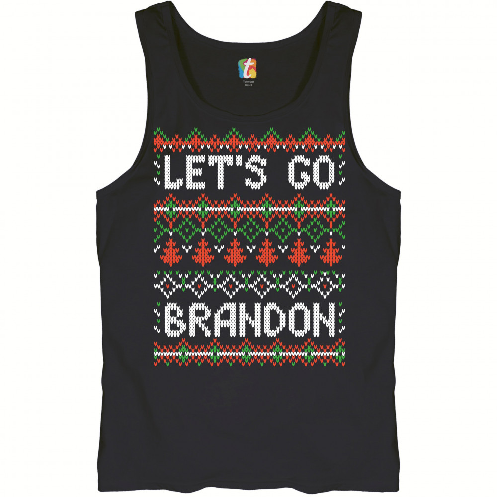 LET'S GO BRANDON tank top ugly sweater christmas funny anti biden men's top black