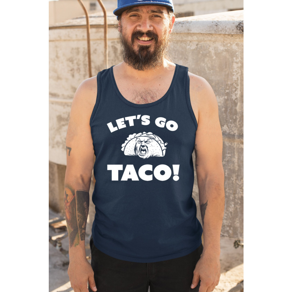 Let’s Go TACO means Trump Always Chickens Out—a bold protest design mocking cowardice, cult politics, and authoritarian fanboys.