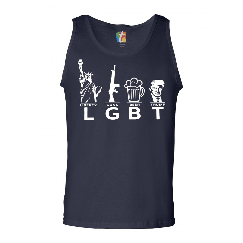 LGBT LIBERTY GUNS BEER TRUMP tank top keep america great maga 2020 men's top navy blue
