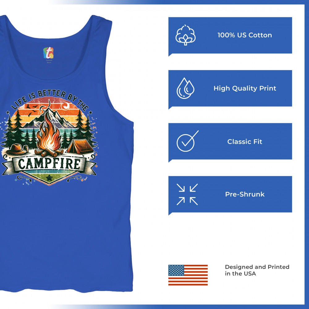Life is Better by the Campfire brings rustic charm and outdoor adventure together with a glowing fire, mountain scenery, and pine forest. Ideal for forest lovers, campers, and national park explorers, this design evokes wilderness vibes, tent life, and the thrill of travel. Great value for anyone who believes adventure begins under the stars.