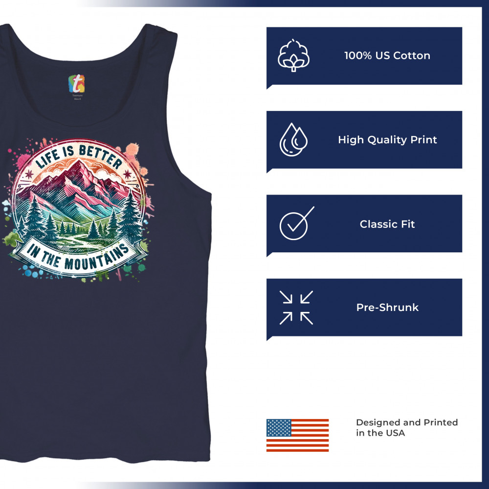 Life Is Better in the Mountains is designed for nature lovers, campers, and trail hikers who find peace in high altitudes. This colorful mountain scene captures wilderness vibes, camping escapes, and weekend hiking energy. Ideal for forest lovers, off-grid adventurers, and glamping fans alike.