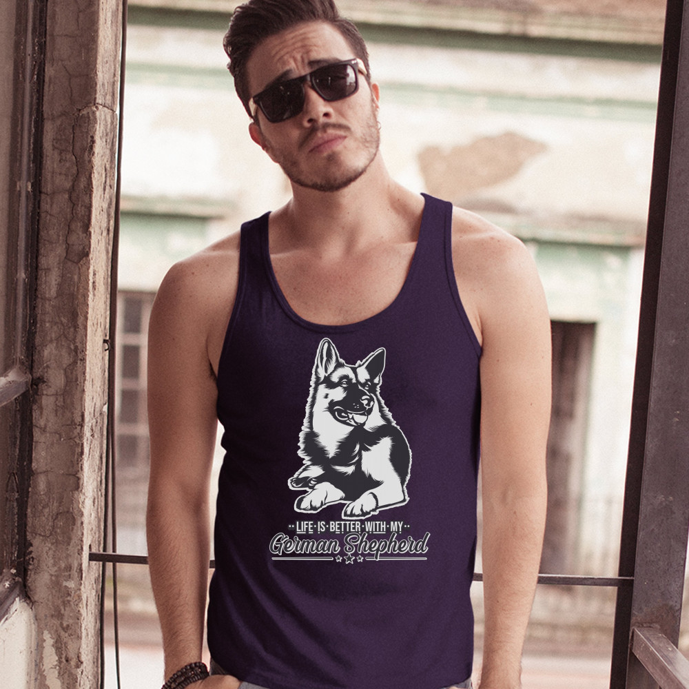 LIFE IS BETTER WITH MY GERMAN SHEPHERD tank top dog lover pet men's top navy blue