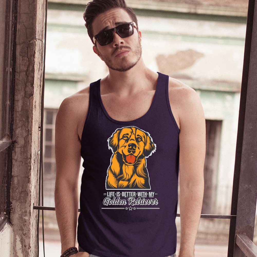 LIFE IS BETTER WITH MY GOLDEN RETRIEVER tank top puppy dog owner men's top navy blue