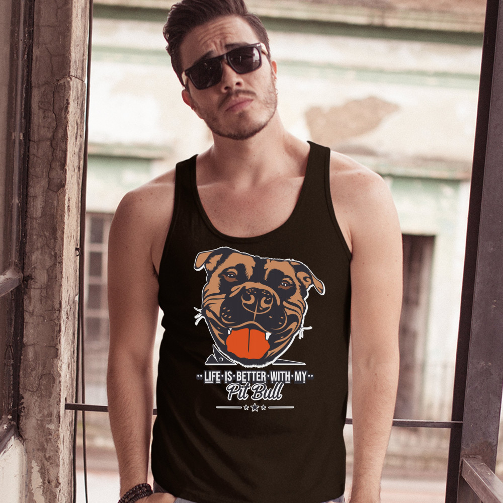 LIFE IS BETTER WITH MY PIT BULL tank top i love me dog animal lover men's top black