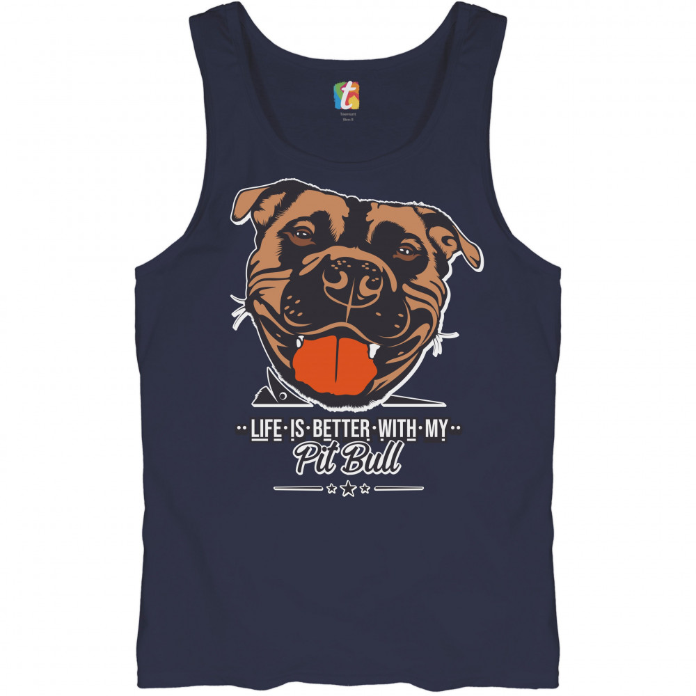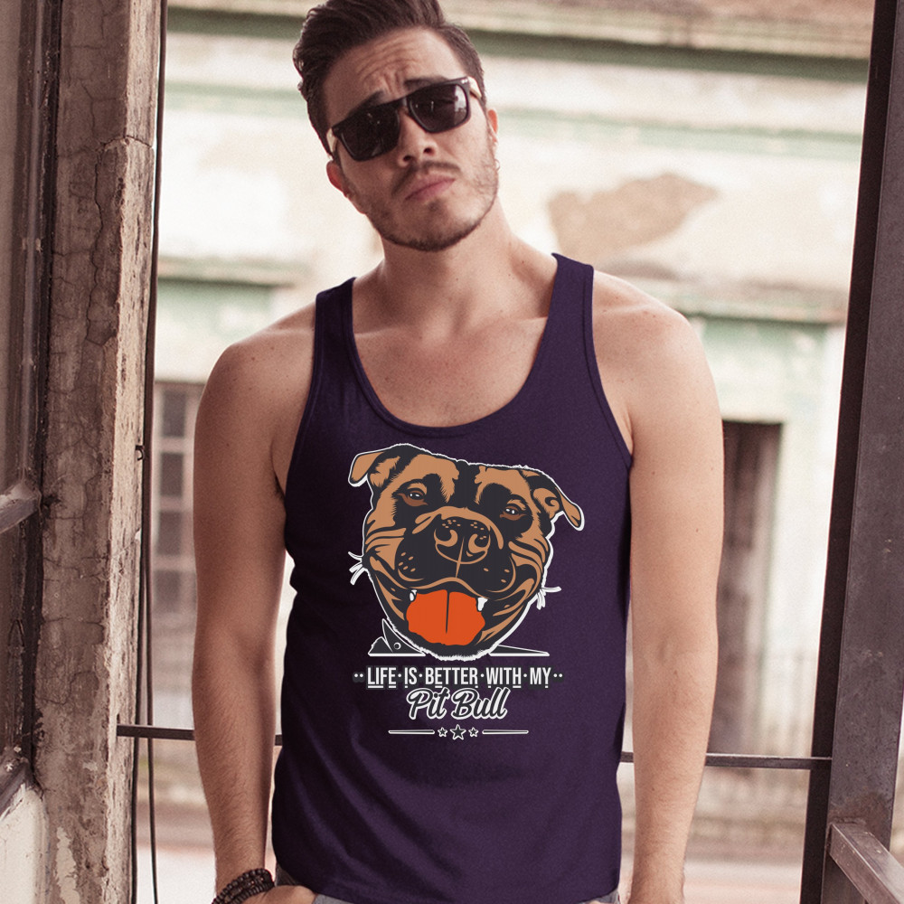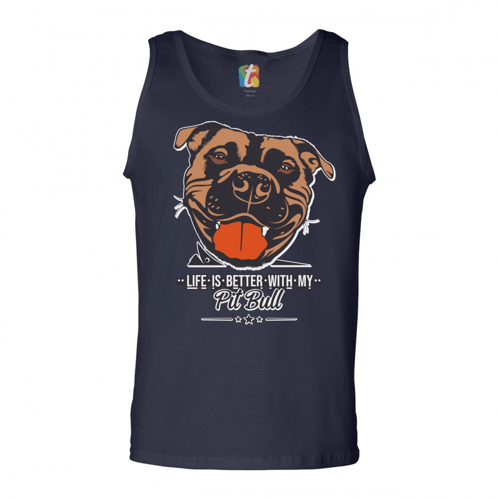 LIFE IS BETTER WITH MY PIT BULL tank top i love me dog animal lover men's top navy blue