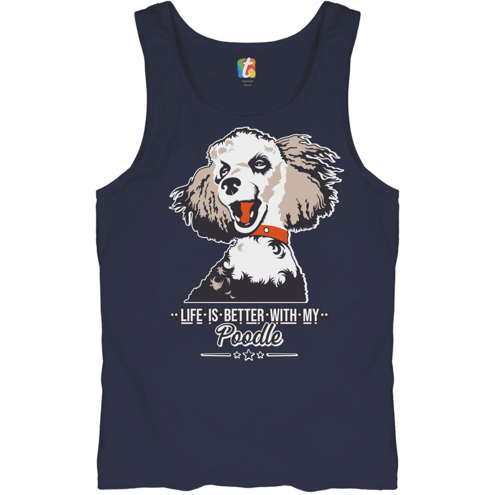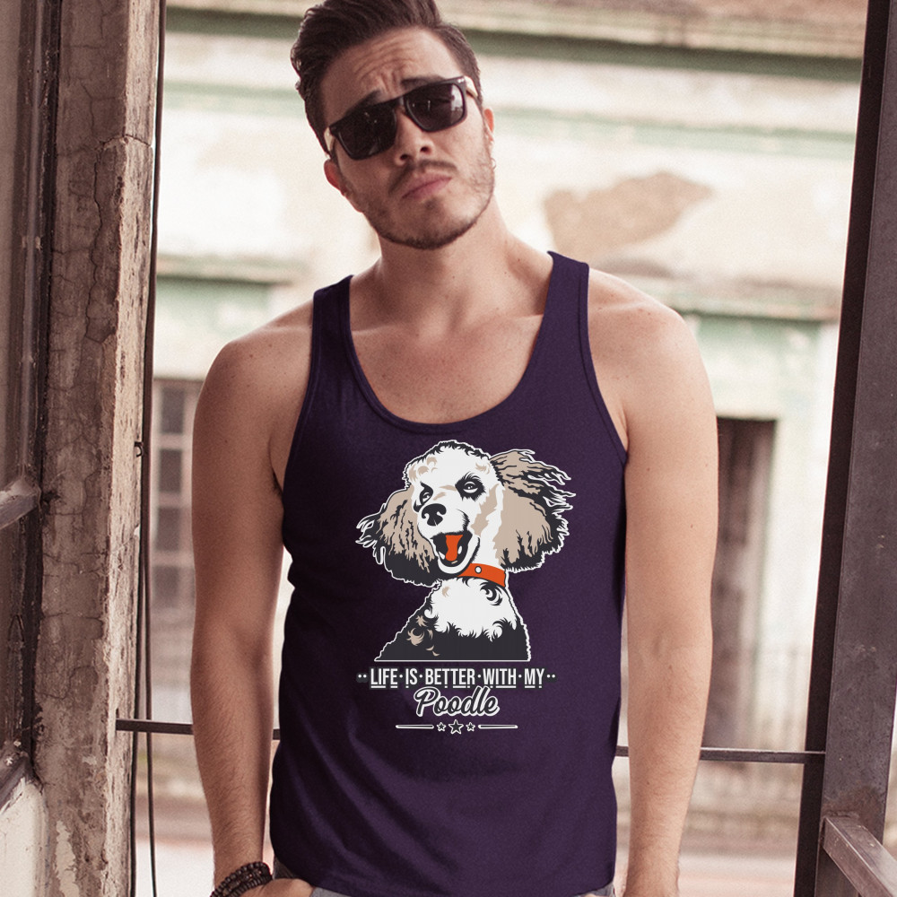 LIFE IS BETTER WITH MY POODLE tank top cute puppy dog lover pet men's top navy blue