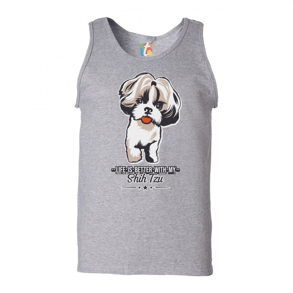 LIFE IS BETTER WITH MY SHIH TZU tank top small dog lover toy dog men's top gray