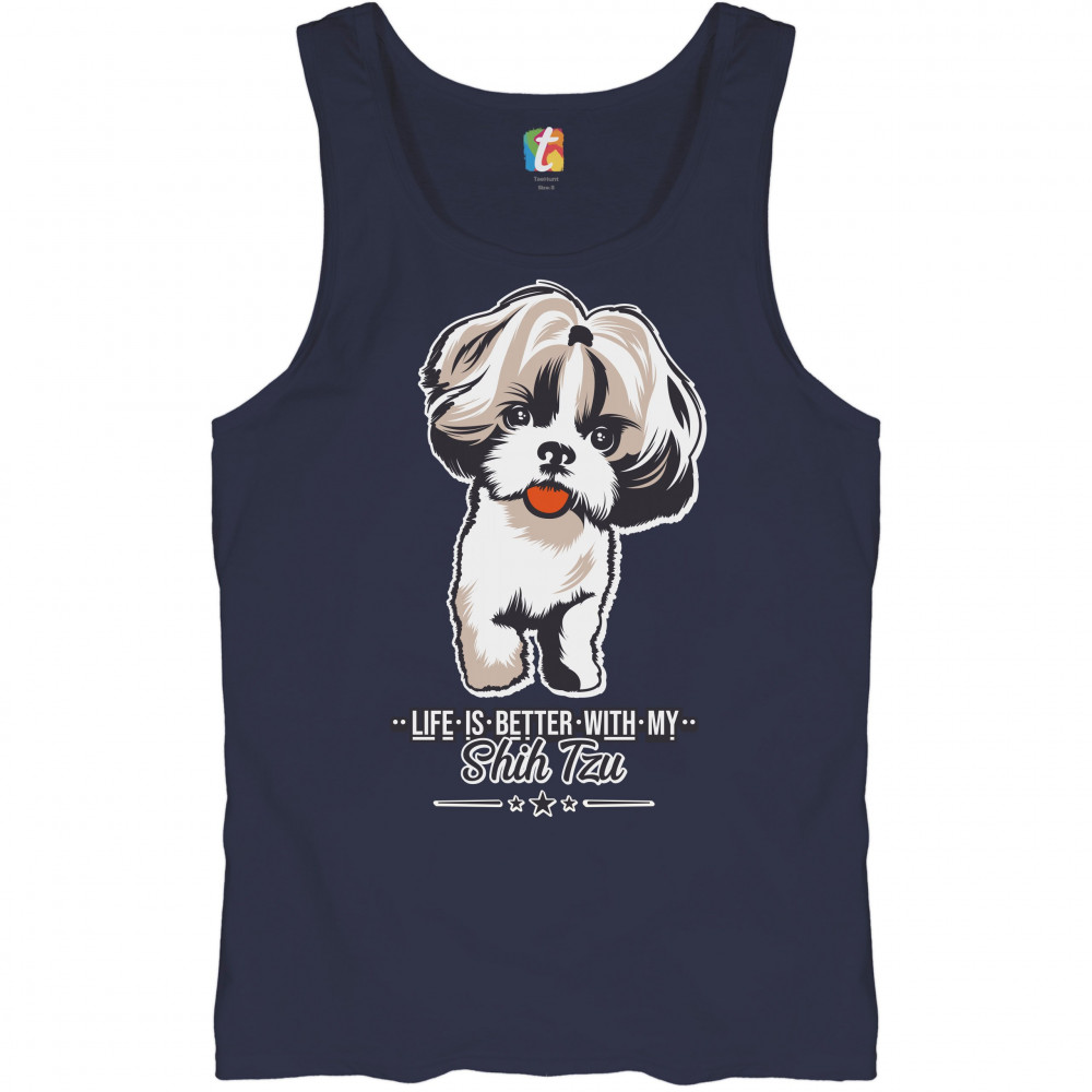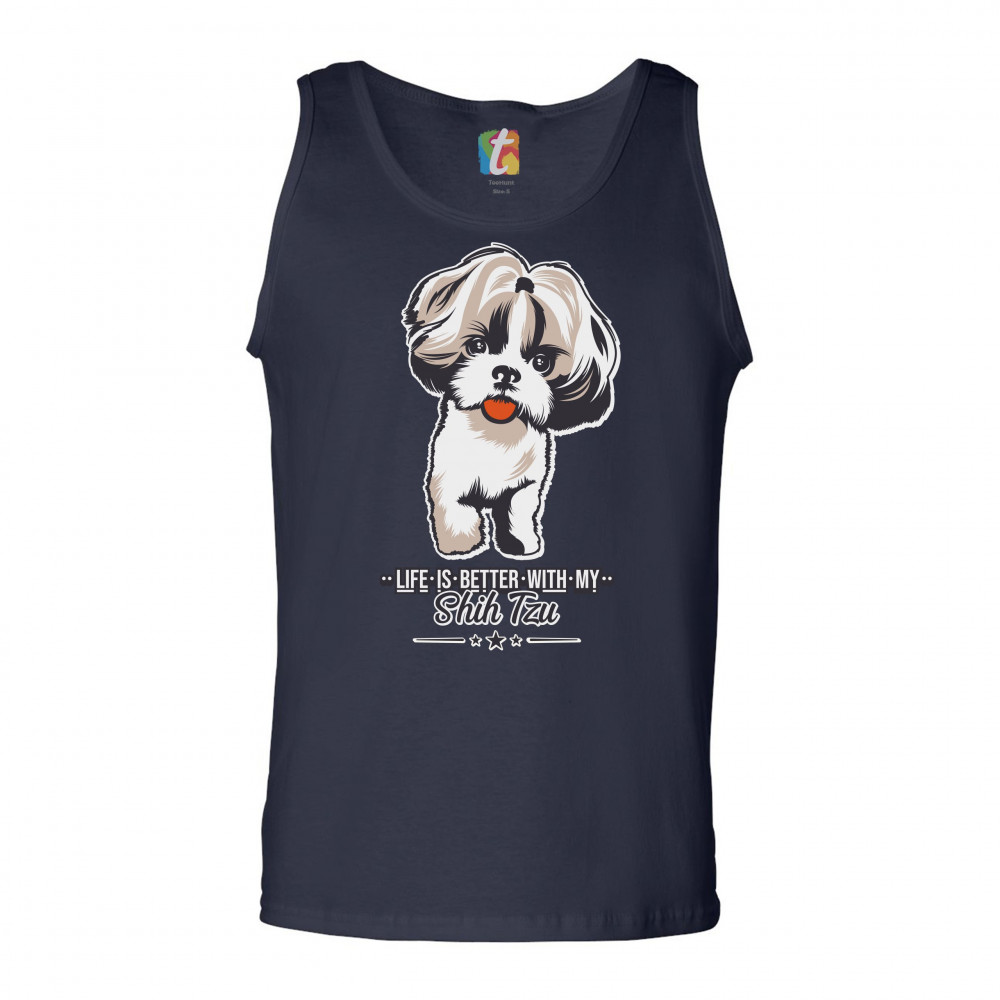 LIFE IS BETTER WITH MY SHIH TZU tank top small dog lover toy dog men's top navy blue