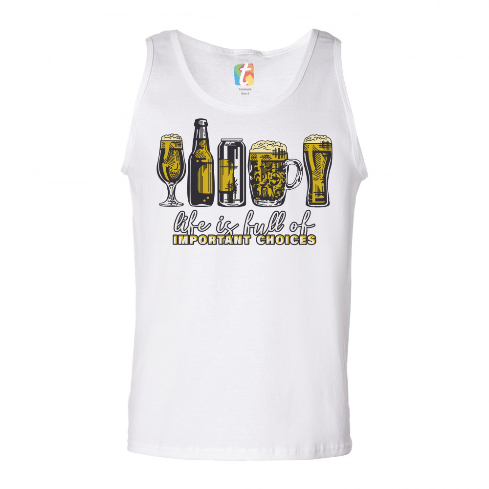LIFE IS FULL OF IMPORTANT CHOICES tank top funny beer drinking ipa men's top white