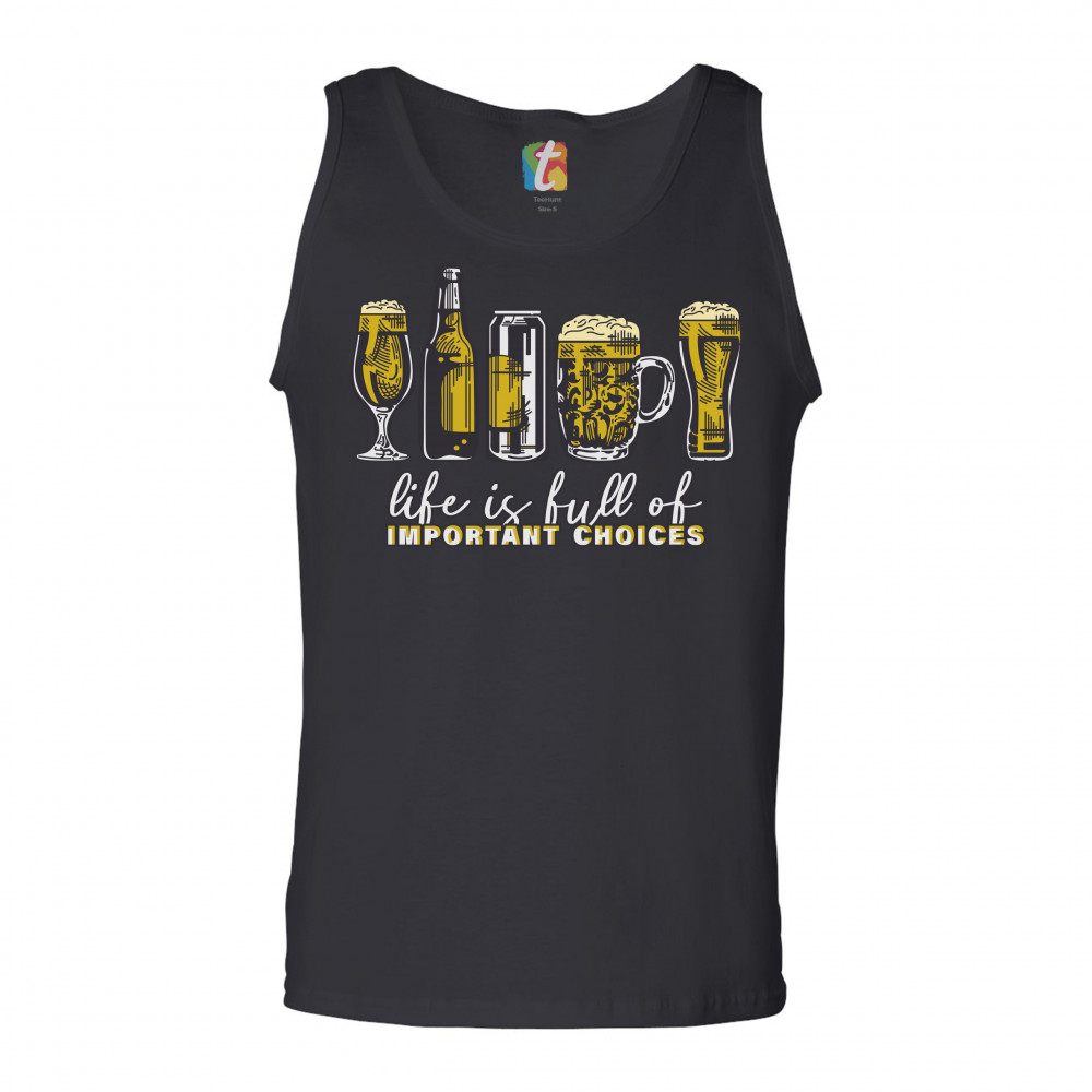 LIFE IS FULL OF IMPORTANT CHOICES tank top funny beer drinking ipa men's top black
