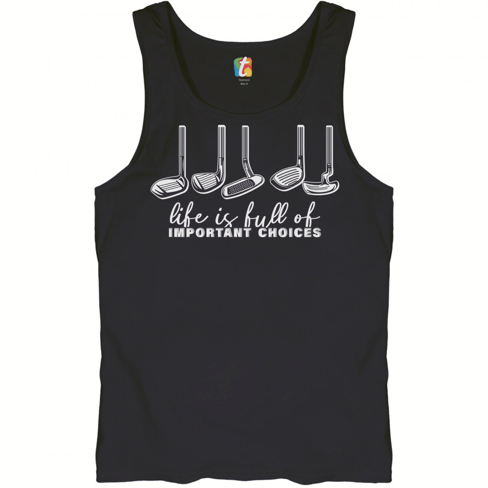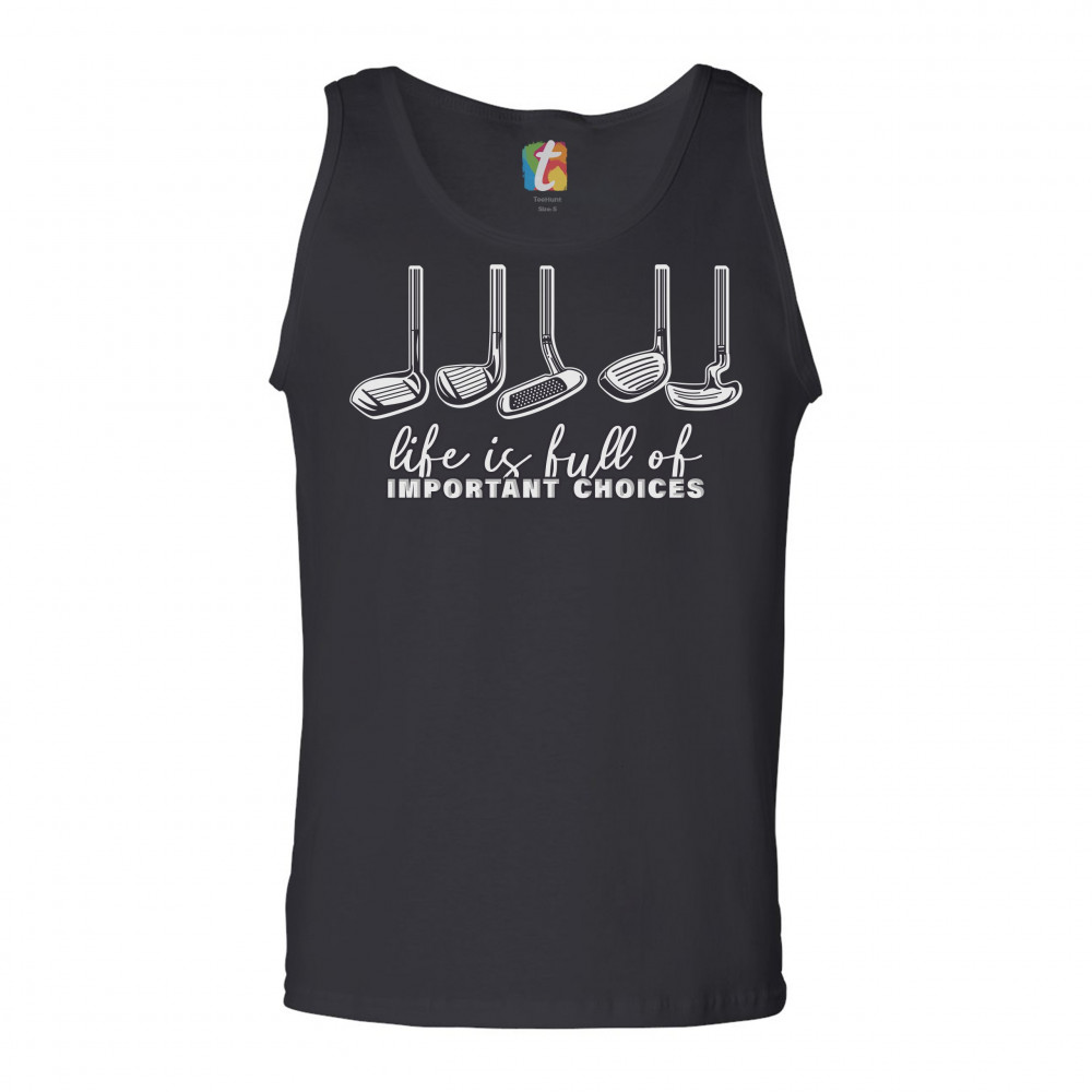 LIFE IS FULL OF IMPORTANT CHOICES tank top funny golf clubs golfing men's top black