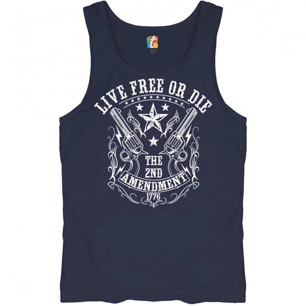 LIVE FREE OR DIE tank top the 2nd amendment 1776 patriotic gun owner men's top navy blue