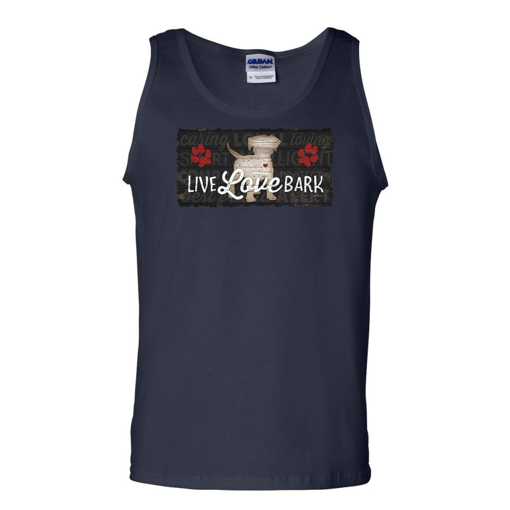 LIVE LOVE BARK tank top cute dog puppy doggie paw wiggle pet woof sleeveless navy blue