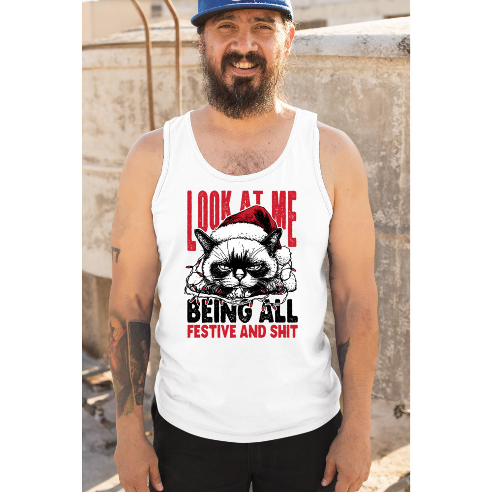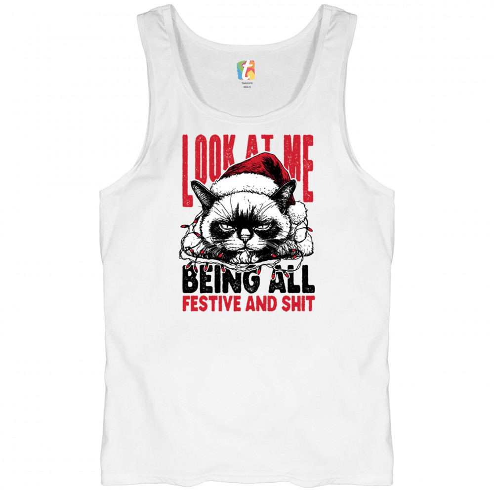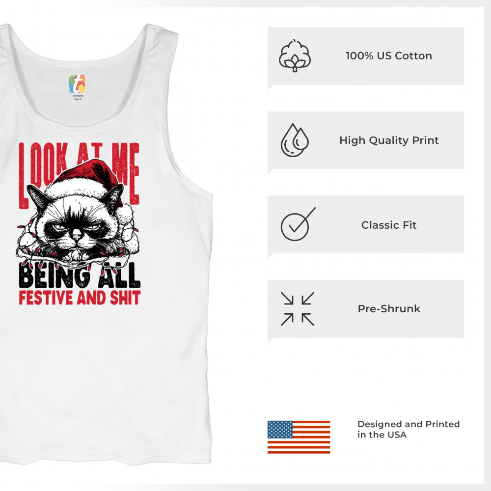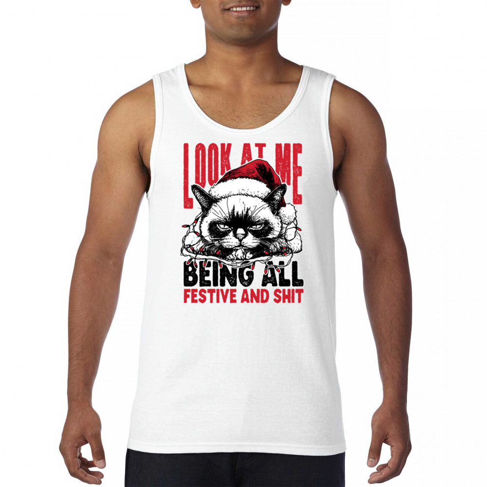Grumpy Cat Christmas design with Santa hat, Christmas tree humor, Let It Snow vibes, Jingle Bells style, and sarcastic Merry Xmas spirit.