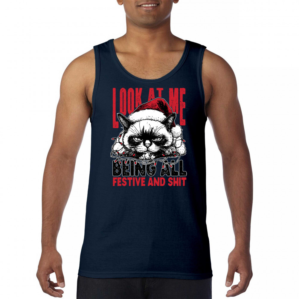 Grumpy Cat Christmas design with Santa hat, Christmas tree humor, Let It Snow vibes, Jingle Bells style, and sarcastic Merry Xmas spirit.