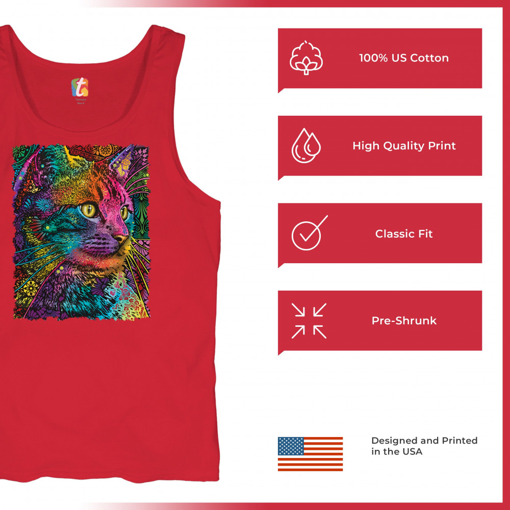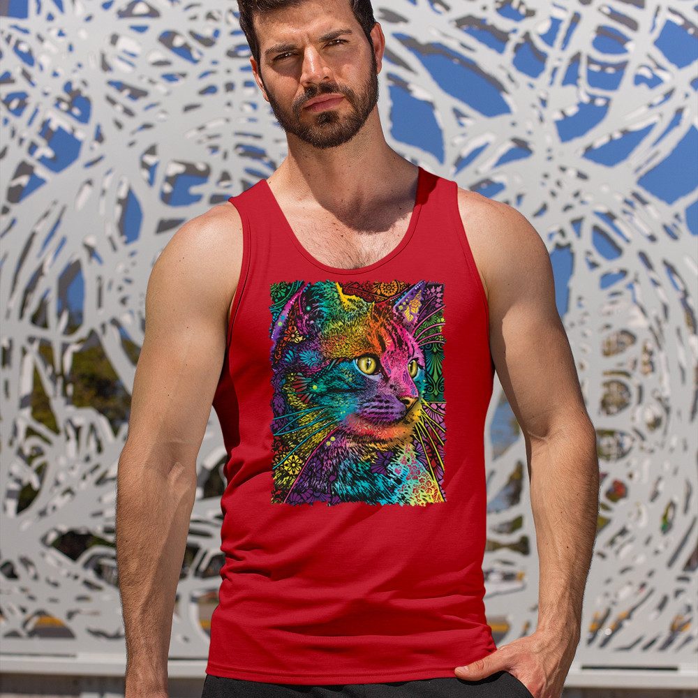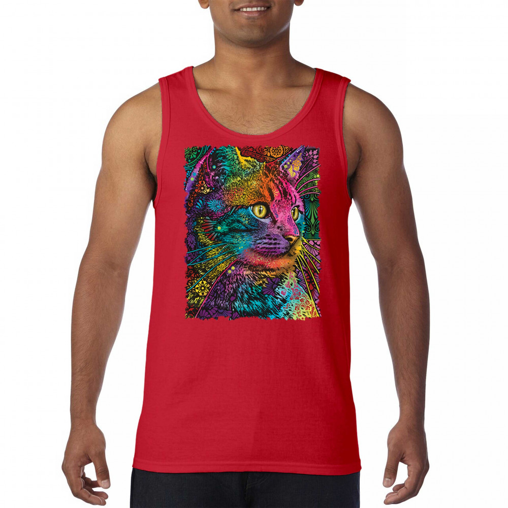 LOVABLE CAT tank top dean russo colorful felis catus pattern art men's top red