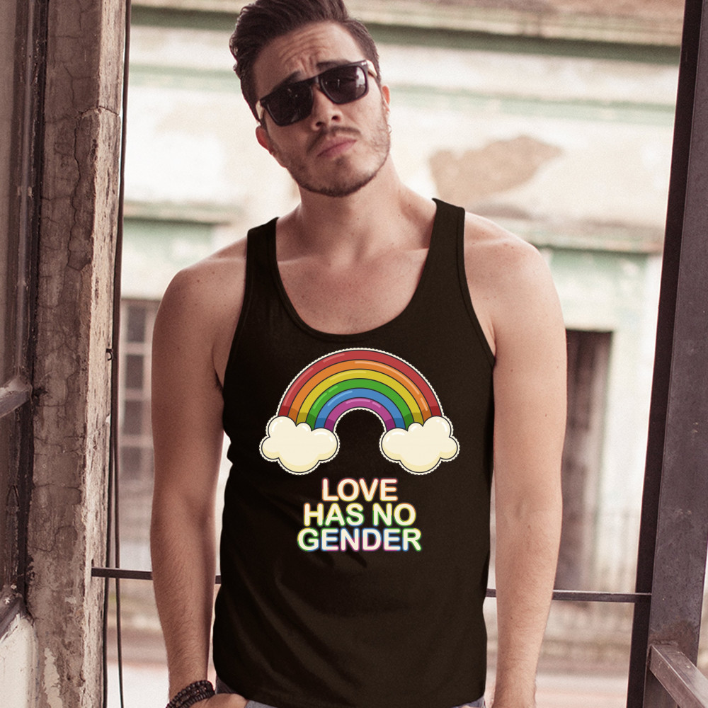 LOVE HAS NO GENDER tank top gay pride queer rainbow love is love men's top black
