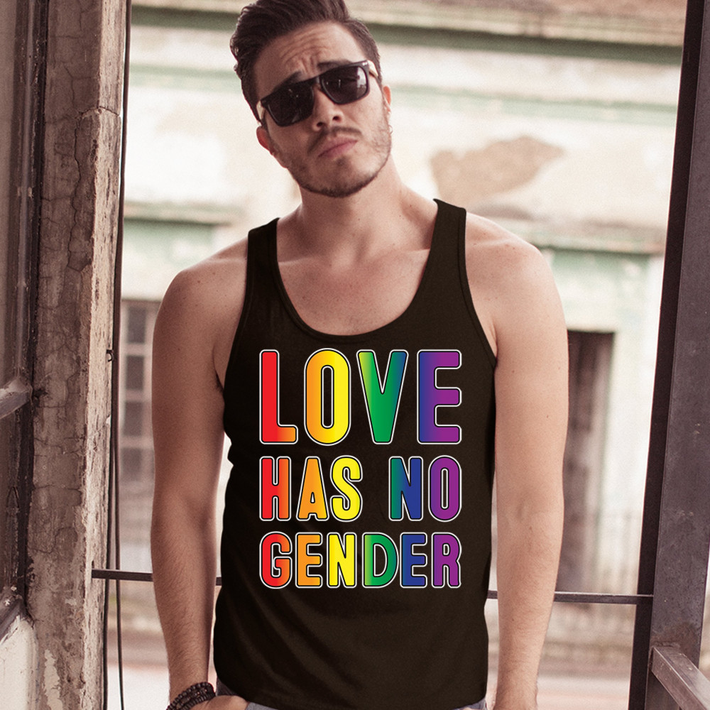 LOVE HAS NO GENDER tank top lesbian gay bi transgender queer ally men's top black