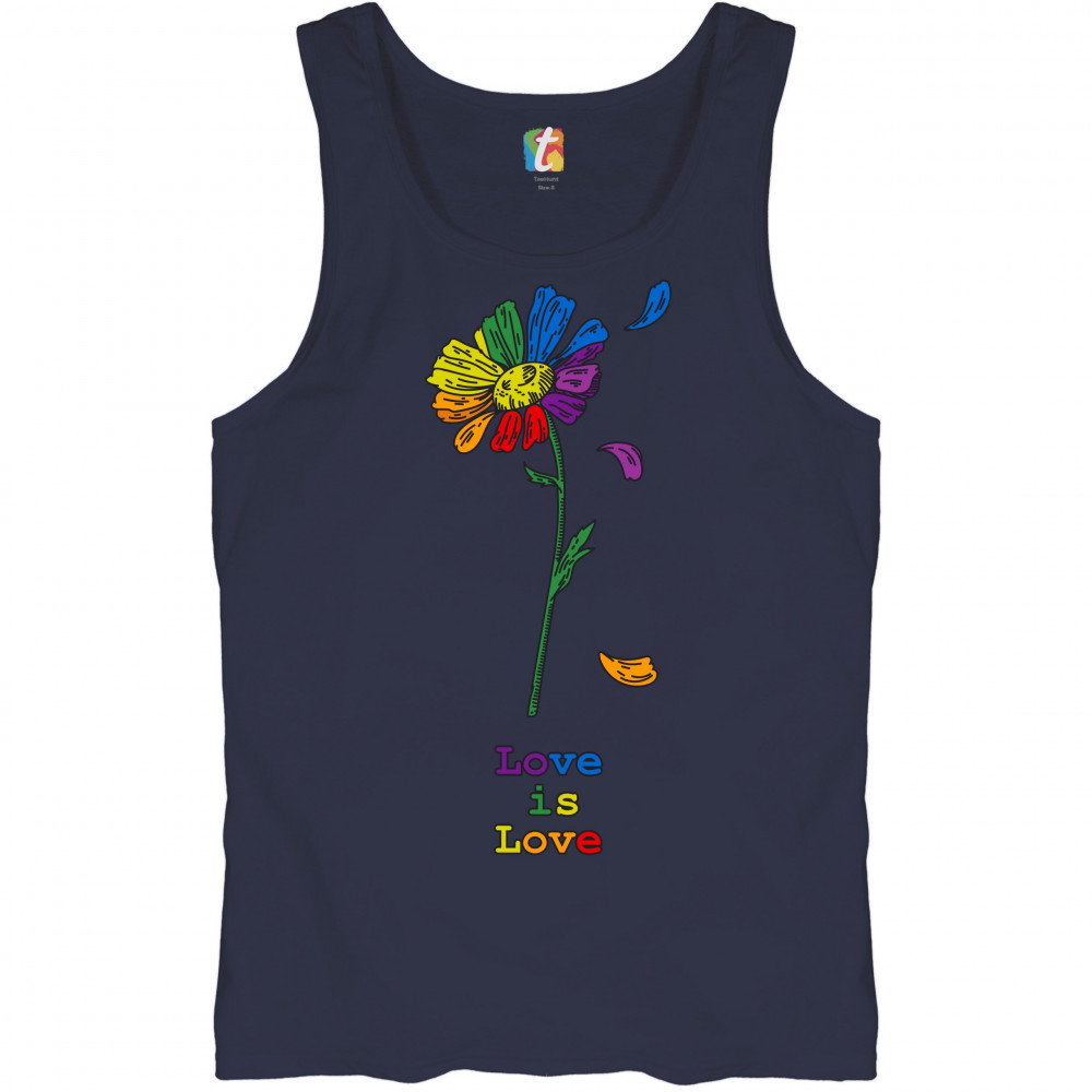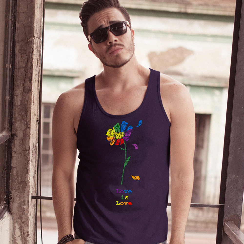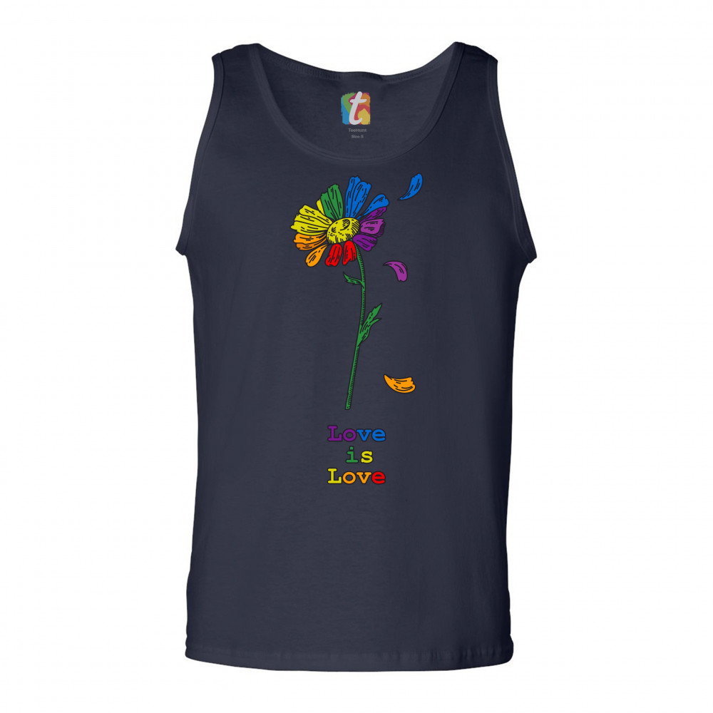 LOVE IS LOVE tank top rainbow flower lgbt acceptance gay pride men's top navy blue