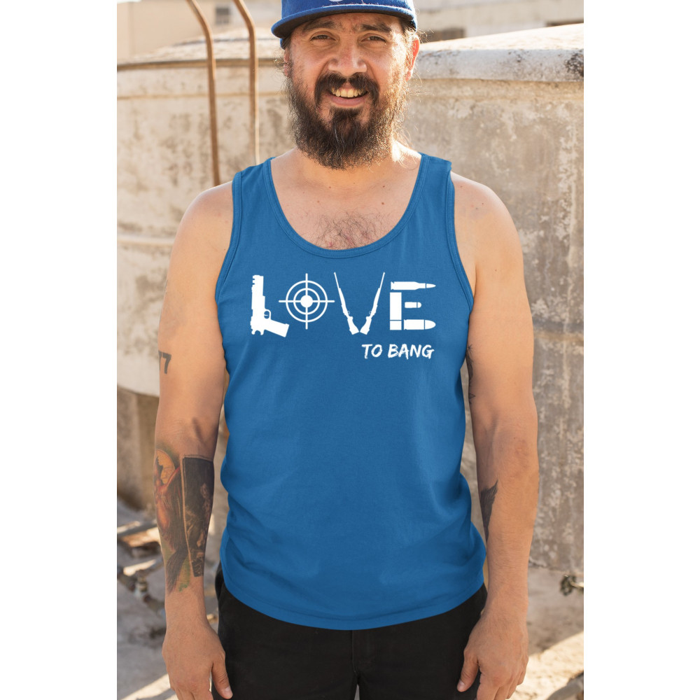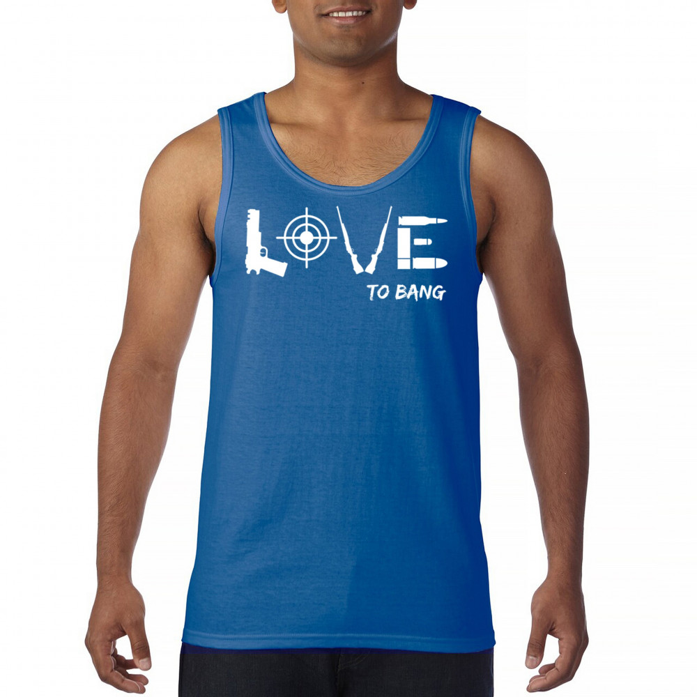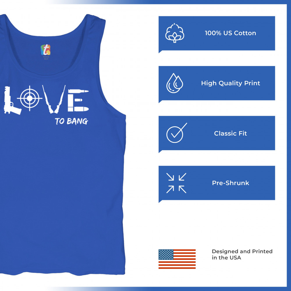 Embrace your right to bear arms with our bold "LOVE To Bang" T-shirt. Whether you're a service veteran, a militia member, or a staunch advocate for the 4th amendment, this shirt's clever design ensures you stand out. Celebrate your love for freedom—and your sense of humor—with apparel that hits the mark.