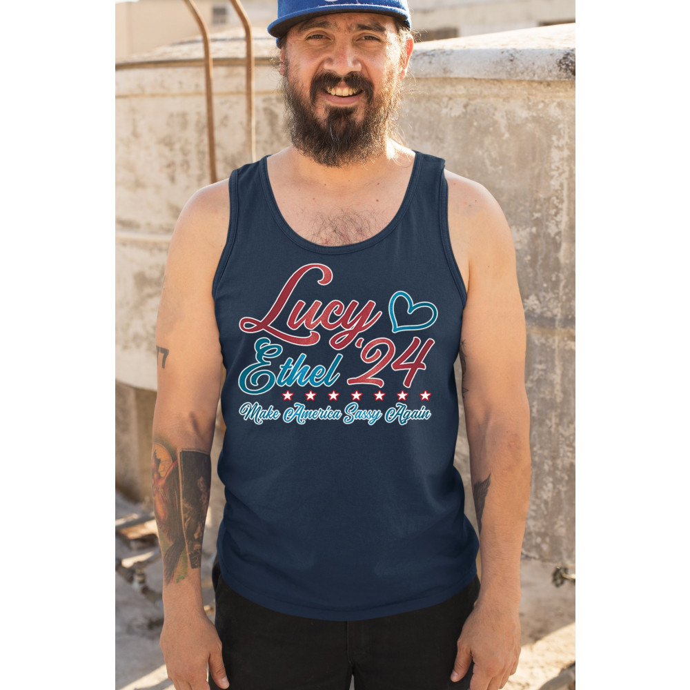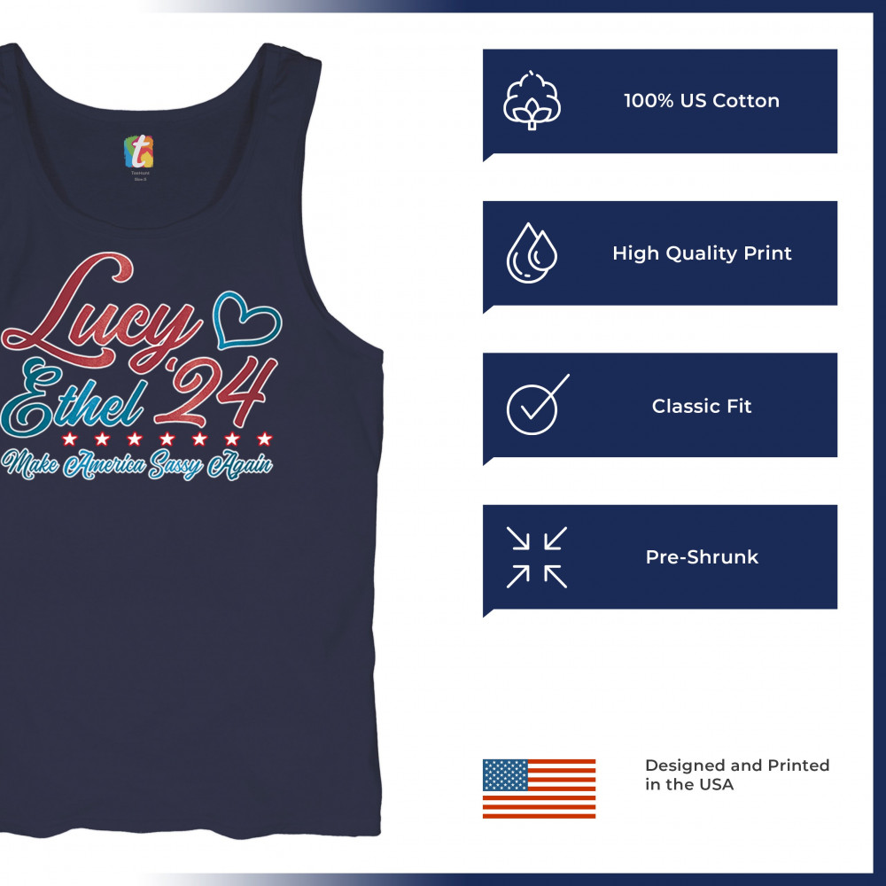 Step back into the golden age of television with this unique election-themed design. Perfect for fans of classic American TV, this design blends nostalgia with modern-day election humor. Whether you're wearing it to make a statement or just for fun, this design is sure to turn heads and spark conversations. Ideal for casual wear, themed parties, or as a thoughtful gift for TV buffs. Celebrate the past while looking ahead with this delightful and sassy design.