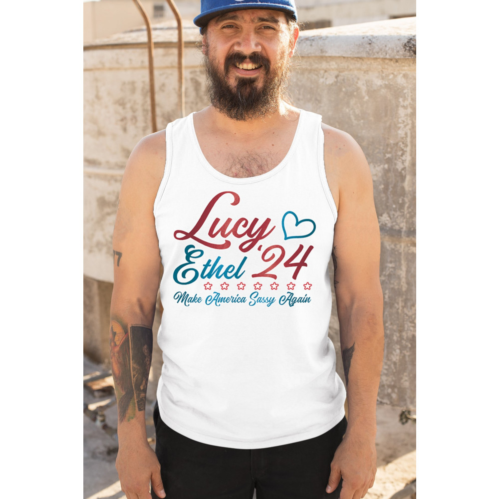 Step back into the golden age of television with this unique election-themed design. Perfect for fans of classic American TV, this design blends nostalgia with modern-day election humor. Whether you're wearing it to make a statement or just for fun, this design is sure to turn heads and spark conversations. Ideal for casual wear, themed parties, or as a thoughtful gift for TV buffs. Celebrate the past while looking ahead with this delightful and sassy design.