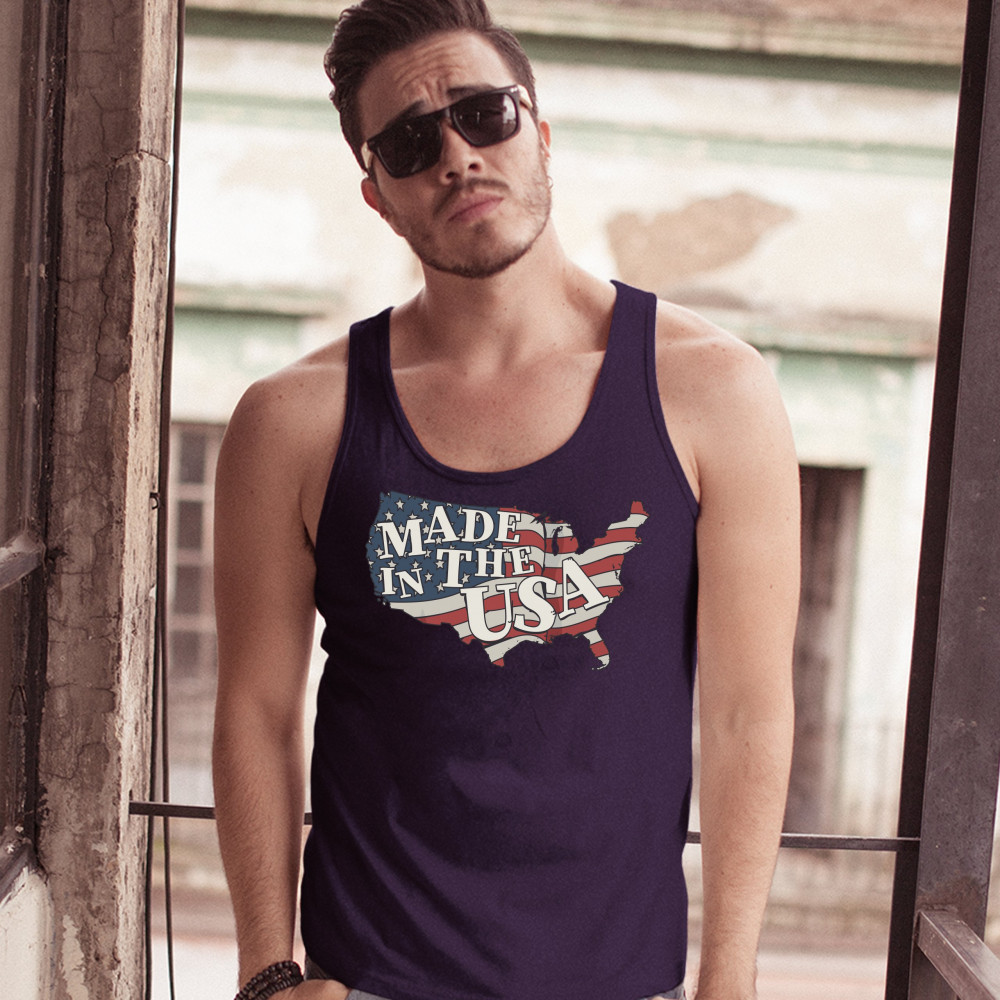 MADE IN THE USA tank top american flag independence day 4th of july men's top navy blue