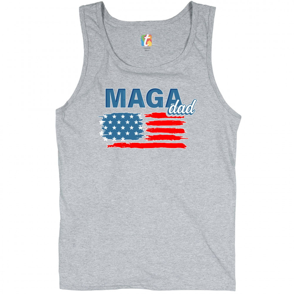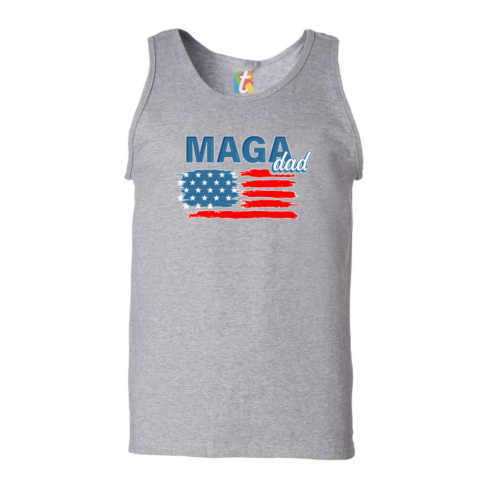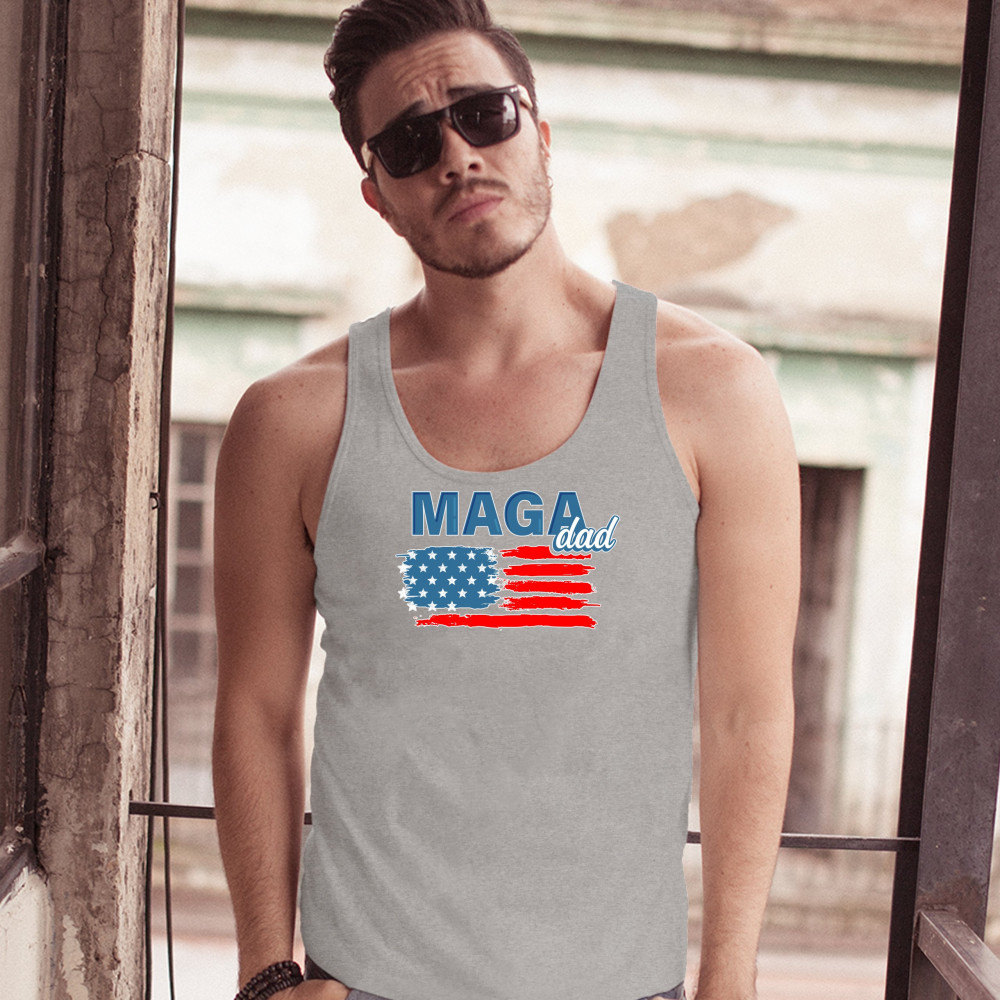 MAGA DAD AMERICAN FLAG tank top donald trump 2020 keep america great men's top gray